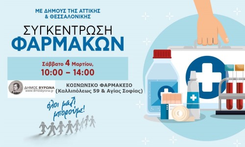 Το Κοινωνικό Φαρμακείο Βύρωνα συγκεντρώνει φάρμακα και υγειονομικό υλικό το Σάββατο 4 Μαρτίου