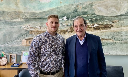 Ο Δήμαρχος Βύρωνα συνάντησε τη Δευτέρα στο γραφείο του, τον 20χρονο φοιτητή, Ανδρέα Αλικανιώτη και την οικογένεια του, για να τον συγχαρεί για το απαράμιλλο θάρρος, τη γενναιότητα και τον αλτρουϊσμό που επέδειξε στο μοιραίο σιδηροδρομικό δυστύχημα στα Τέμπη, στις 28 Φεβρουαρίου 2023.