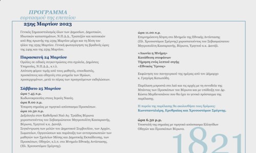Το πρόγραμμα εορτασμού της 25ης Μαρτίου 2023