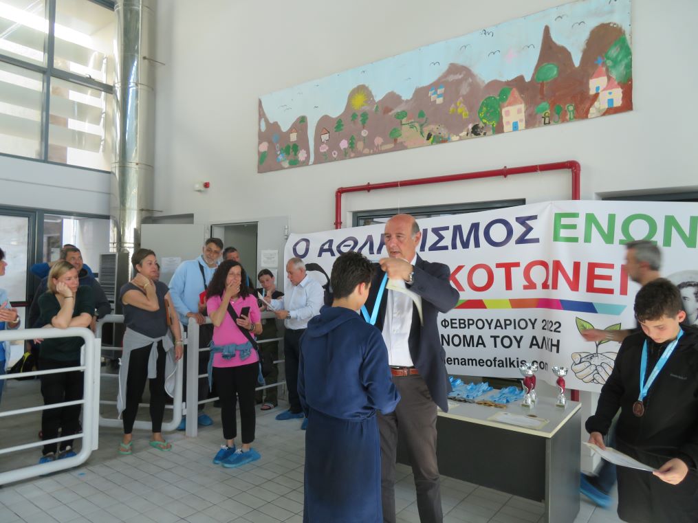 Με την παρουσία τους μας τίμησαν οι αντιδήμαρχοι κ. Κόκκαλης και κ. Σπυρόπουλος, οι οποίοι έκαναν τις απονομές, καθώς πραγματοποίησαν και ειδική βράβευση στον μαθητή-κολυμβητή Τζανή Άγγελο.