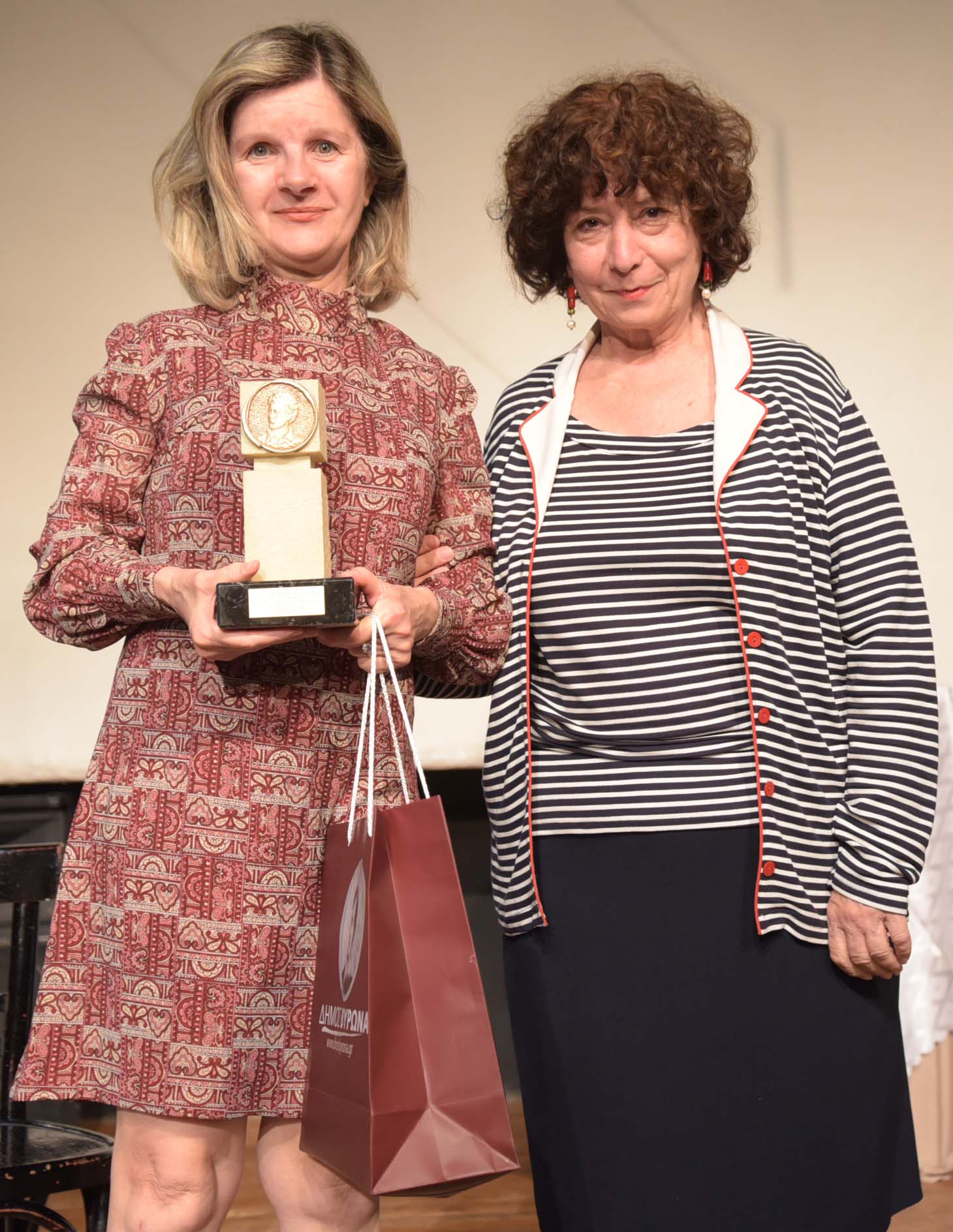 Το βραβείο παρέλαβε η διευθύντρια κα Βασιλική Μπράτη για την συμμετοχή του σχολείου με την θεατρική παράσταση «Τα μαξιλάρια της Ουρανούπολης»