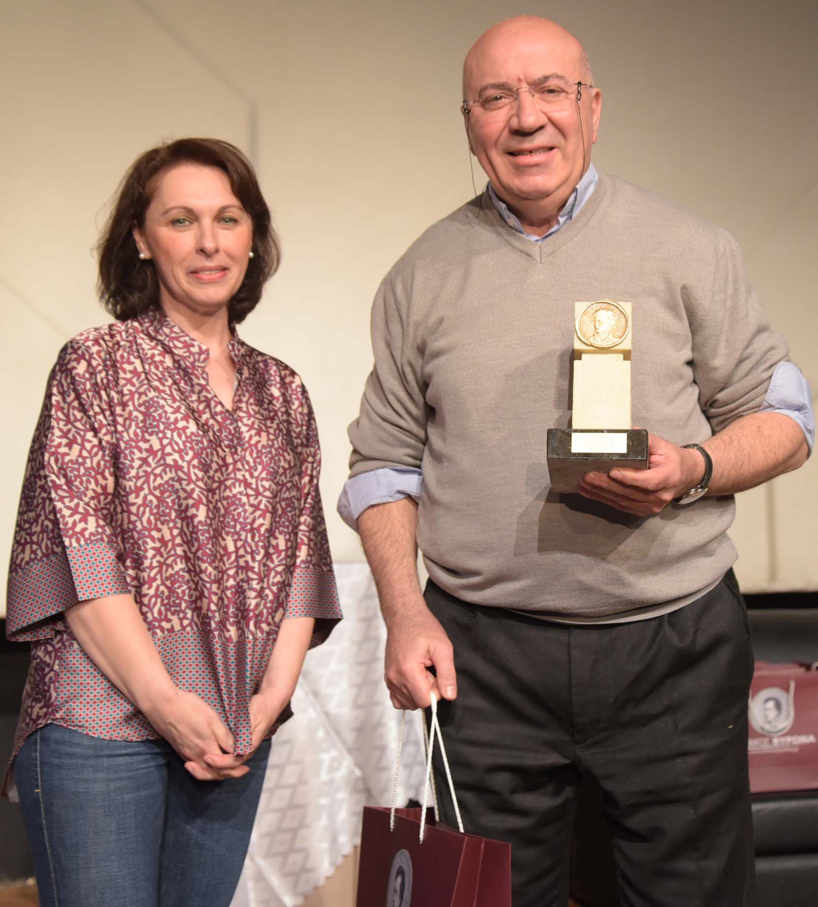 Το βραβείο παρέλαβε ο υπεύθυνος της θεατρικής ομάδας, κ. Χάρης Αρώνης, για την συμμετοχή της με τη θεατρική παράσταση «DNA»