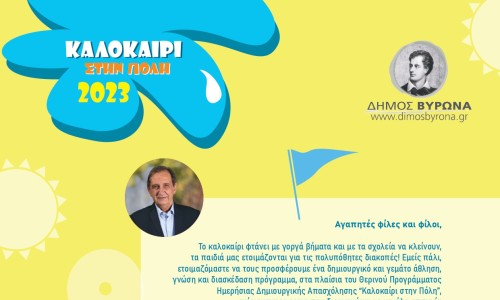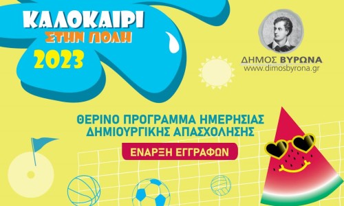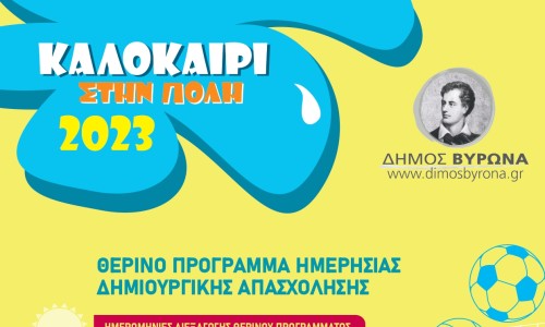 Για μία ακόμα χρονιά ο Δήμος Βύρωνα οργανώνει το πρόγραμμα "Καλοκαίρι στην πόλη 2023" για την ημερήσια δημιουργική απασχόληση των παιδιών του δημοτικού, μετά το τέλος της σχολικής χρονιάς.