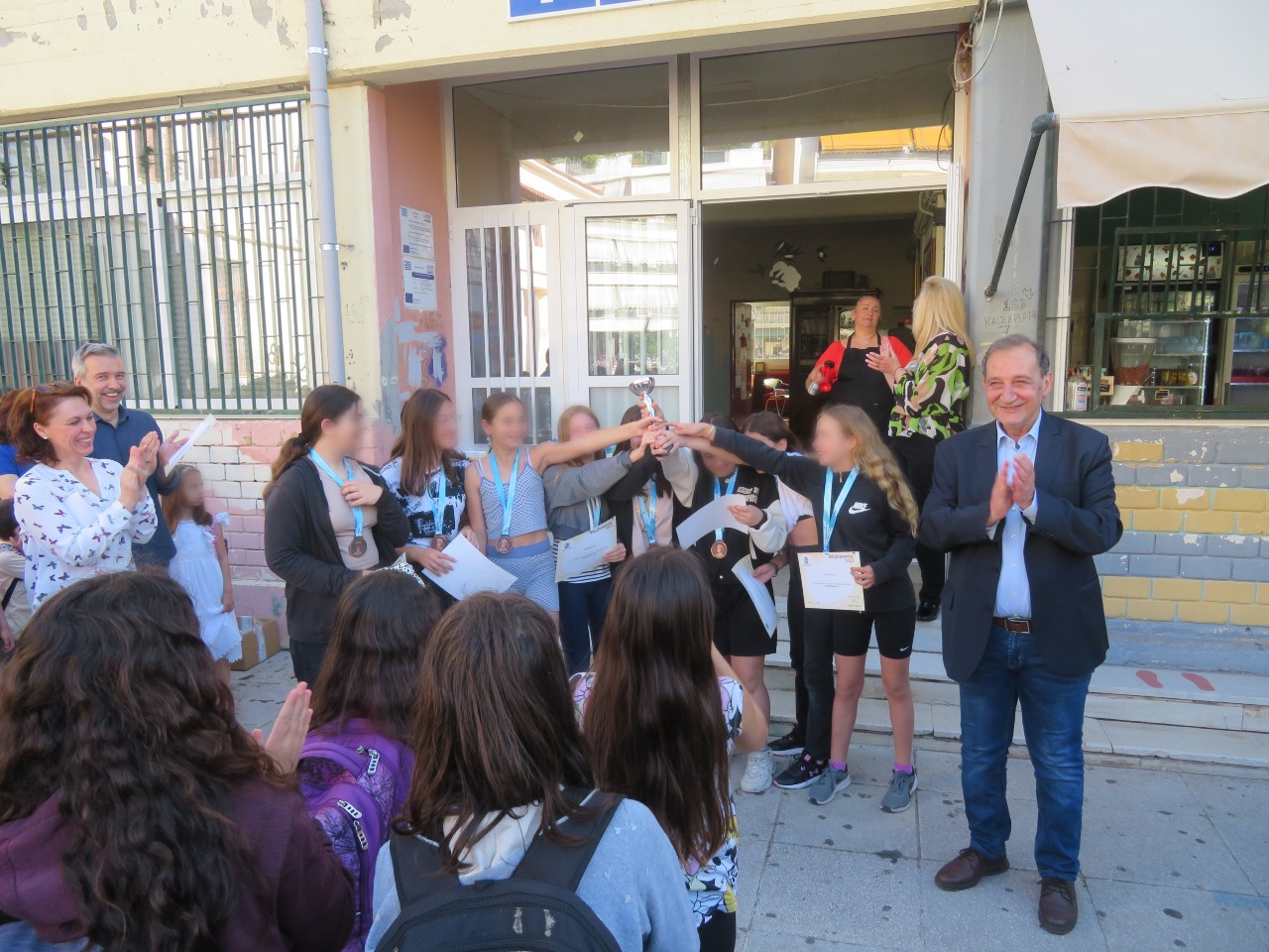Τις απονομές των παιδιών μας έκανε ο Δήμαρχος Γρηγόρης Κατωπόδης για την 1η θέση που κατέλαβαν στο ποδόσφαιρο αγοριών, για την 2η θέση στο μπάσκετ αγοριών και για την 3η θέση στο βόλεϊ κοριτσιών.