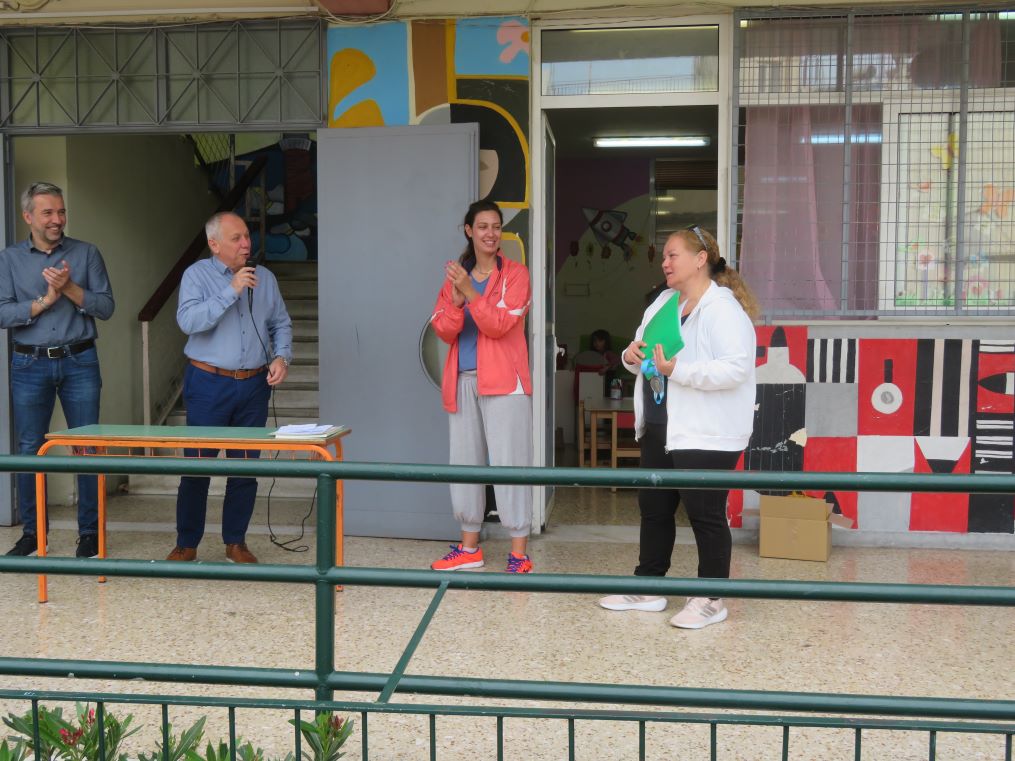 Τις απονομές των παιδιών πραγματοποίησε ο Αντιδήμαρχος Κοινωνικής Προστασίας και Αλληλεγγύης Χρήστος Σπυρόπουλος, για την 2η θέση στο Χάντμπολ κοριτσιών, για την 2η θέση στο Χάντμπολ αγοριών, καθώς και για την 3η θέση στο μπάσκετ αγοριών.