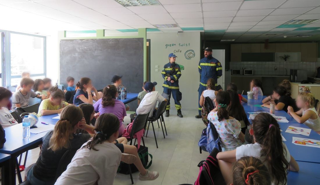 Την Πέμπτη 22 Ιουνίου εθελοντές από το Κέντρο Προστασίας Δασών και Φυσικού Περιβάλλοντος Βύρωνα, επισκέφτηκαν το Camp του Δήμου Βύρωνα και μίλησαν στα παιδιά για το θεσμό του εθελοντή δασοπυροσβέστη, την πυροσβεστική τεχνική, τις δασικές πυρκαγιές, τους κανόνες επικοινωνίας και τους τρόπους διάσωσης ανθρώπων. Αναφέρθηκαν επίσης στο τι πρέπει να προσέχουμε και τι να αποφεύγουμε κατά τη διάρκεια της αντιπυρικής περιόδου και στις βασικές οδηγίες πρώτων βοηθειών.