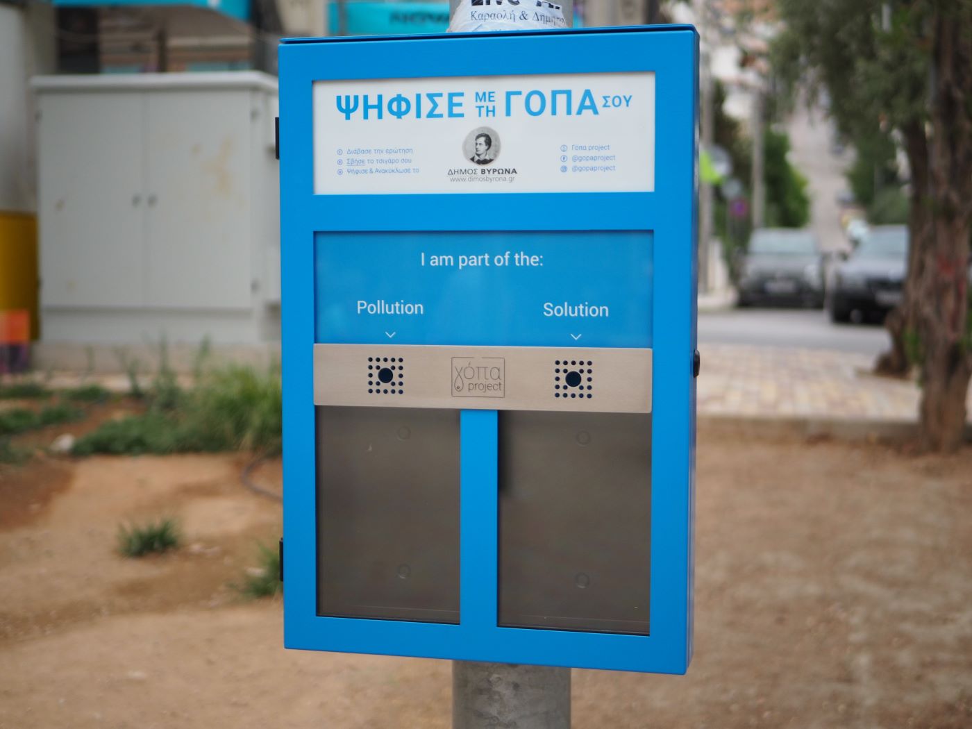 Το ΓΟΠΑ project -που ήλθε πλέον και στο Βύρωνα- είναι ένα περιβαλλοντικό πρόγραμμα συλλογής και ανακύκλωσης αποτσίγαρων, που έρχεται να καλύψει την απουσία αστικών/δημόσιων σταχτοδοχείων στις ελληνικές πόλεις και ταυτόχρονα να κινητοποιήσει με ευρηματικό τρόπο -μέσω ενός συστήματος ψηφοφορίας- τους καπνιστές, έτσι ώστε να μειωθούν τα απορρίμματα τσιγάρου στο δημόσιο χώρο και στο περιβάλλον.