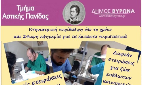Ο Δήμος Βύρωνα πρωτοπορεί στην φροντίδα των ζώων!