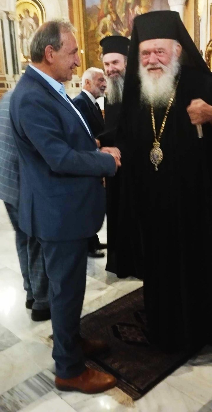 Ο Δήμαρχος Βύρωνα Γρηγόρης Κατωπόδης και η αντιδήμαρχος Πολιτισμού Λεμονιά Κλωνάρη παραβρέθηκαν στο αρχιερατικό μνημόσυνο στη μνήμη των μεγάλων ευεργετών του ιδρύματος "Προστασία Μητρικών Έργων Σταματίου και Ελένης Βαφειαδάκη" το οποίο τελέστηκε το Σάββατο 30 Σεπτεμβρίου στην Μητρόπολη Αθηνών, χοροστατούντος του Μακαριωτάτου Αρχιεπισκόπου Αθηνών και πάσης Ελλάδος κ.κ. Ιερώνυμου. Μετά το μνημόσυνο ακολούθησε συνάντηση του Δημάρχου με τον Αρχιεπίσκοπο σε πολύ θερμό κλίμα.