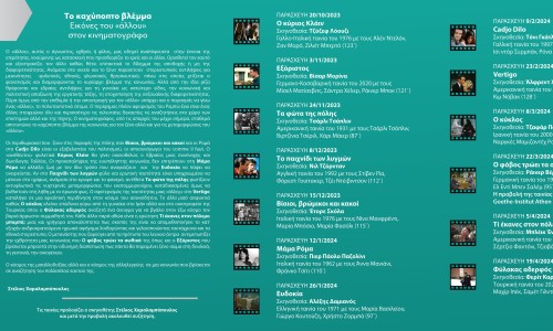 Φέτος, ο σκηνοθέτης Στέλιος Χαραλαμπόπουλος, διάλεξε για μας, μια σειρά σημαντικών ταινιών, από σπουδαίους δημιουργούς, που μας φέρνουν αντιμέτωπους με αυτό: «το καχύποπτο βλέμμα»