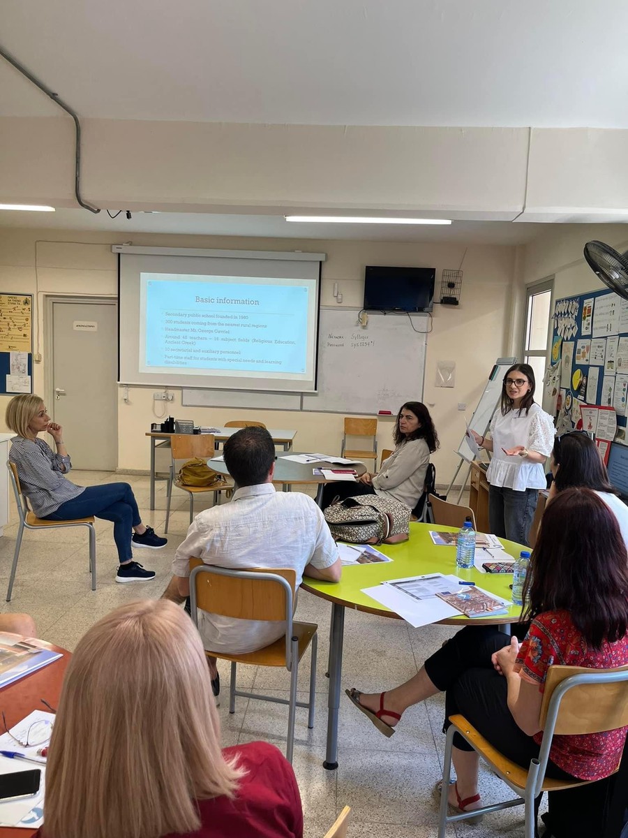 Στην επιμορφωτική δραστηριότητα στην Κύπρο συμμετείχαν 2 -4 εκπαιδευτικοί από κάθε συνεργαζόμενο σχολείο, οι οποίοι είχαν την ευκαιρία να συνεργαστούν σε διεθνές επίπεδο, να ανταλλάξουν ιδέες και διδακτικές εμπειρίες σχετικά με το θέμα του έργου, να παρουσιάσουν τα σχολεία και τα εκπαιδευτικά συστήματα των χωρών τους. να γνωριστούμε αμοιβαία.