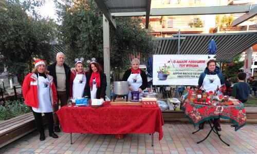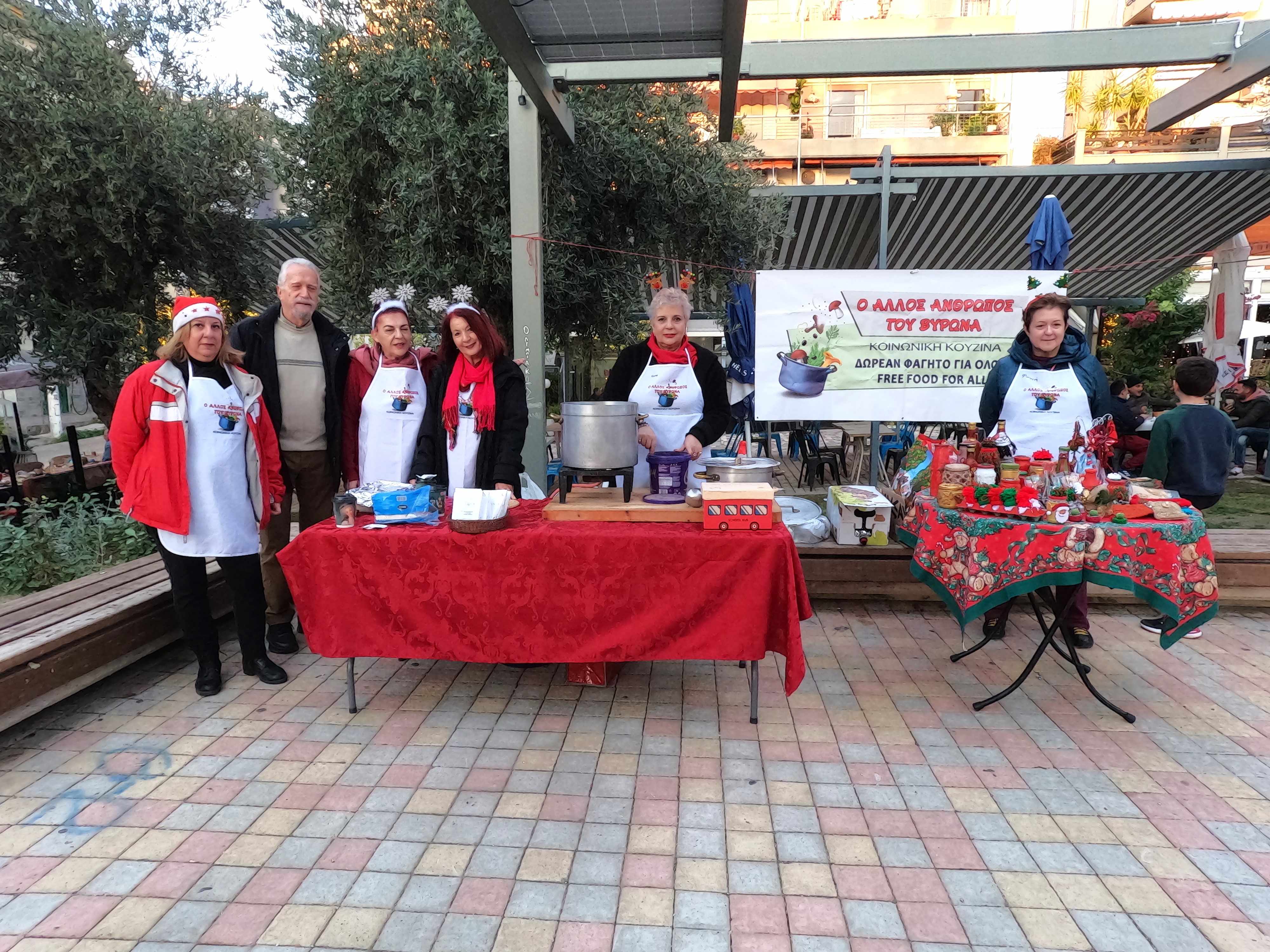 Οι μεγάλοι απολάμβαναν ζεστή σοκολάτα και αρωματικό κρασί που πρόσφερε δωρεάν και με πολύ αγάπη, η Κοινωνική Κουζίνα “Ο Άλλος Άνθρωπος του Βύρωνα”.