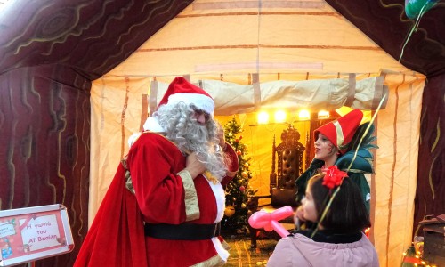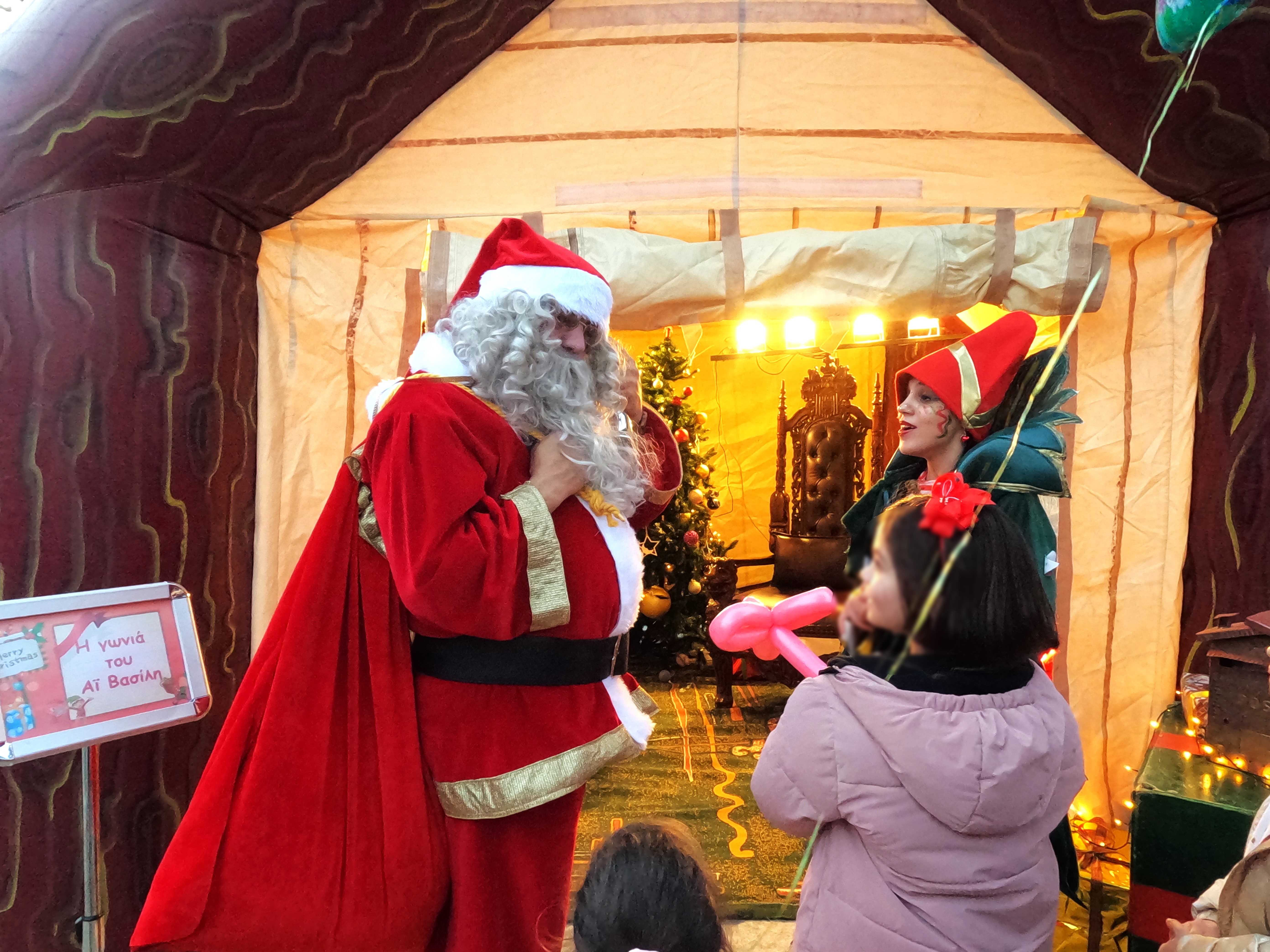 Πλήθος κόσμου συμμετείχε στην όμορφη εορταστική βραδιά, όπου οι μικροί μας φίλοι είχαν την ευκαιρία να δουν από κοντά τον Άγιο Βασίλη και να του ζητήσουν το δώρο τους, που οι βοηθοί του -τα ξωτικά- κατέγραφαν σε ένα μεγάλο χρυσό τετράδιο, να διασκεδάσουν με τους ξυλοπόδαρους, τη μασκότ, τον ταχυδακτυλουργό και τα μπαλόνια, να γευτούν μαλλί της γριάς και να συμμετέχουν στα Χριστουγεννιάτικα Εργαστήρια.