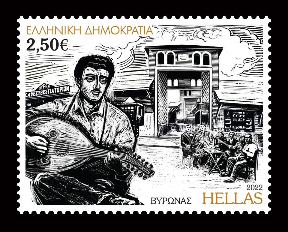 Το γραμματόσημο για τον Βύρωνα, επικεντρώθηκε στην ανάδειξη της ιδιαίτερης μουσικής κουλτούρας που αναπτύχθηκε στον συνοικισμό την περίοδο του Μεσοπολέμου, καθώς μεγάλοι δημιουργοί της Σμυρναίικης μουσικής και του ρεμπέτικου έζησαν στον Βύρωνα και δίδαξαν στις μουσικές σχολές του. Στον Βύρωνα έζησε και ένας από τους σημαντικότερους δημιουργούς, μουσικούς και τραγουδιστές του ρεμπέτικου, με μεγάλο αριθμό ηχογραφήσεων, ο Γρηγόρης Ασίκης, που απεικονίζεται με το ούτι του στο γραμματόσημο. Πίσω του η εμβληματική αγορά του Βύρωνα, η καρδιά του πρώτου συνοικισμού, μέρος της οποίας έχει διασωθεί και υπάρχει μέχρι και σήμερα.