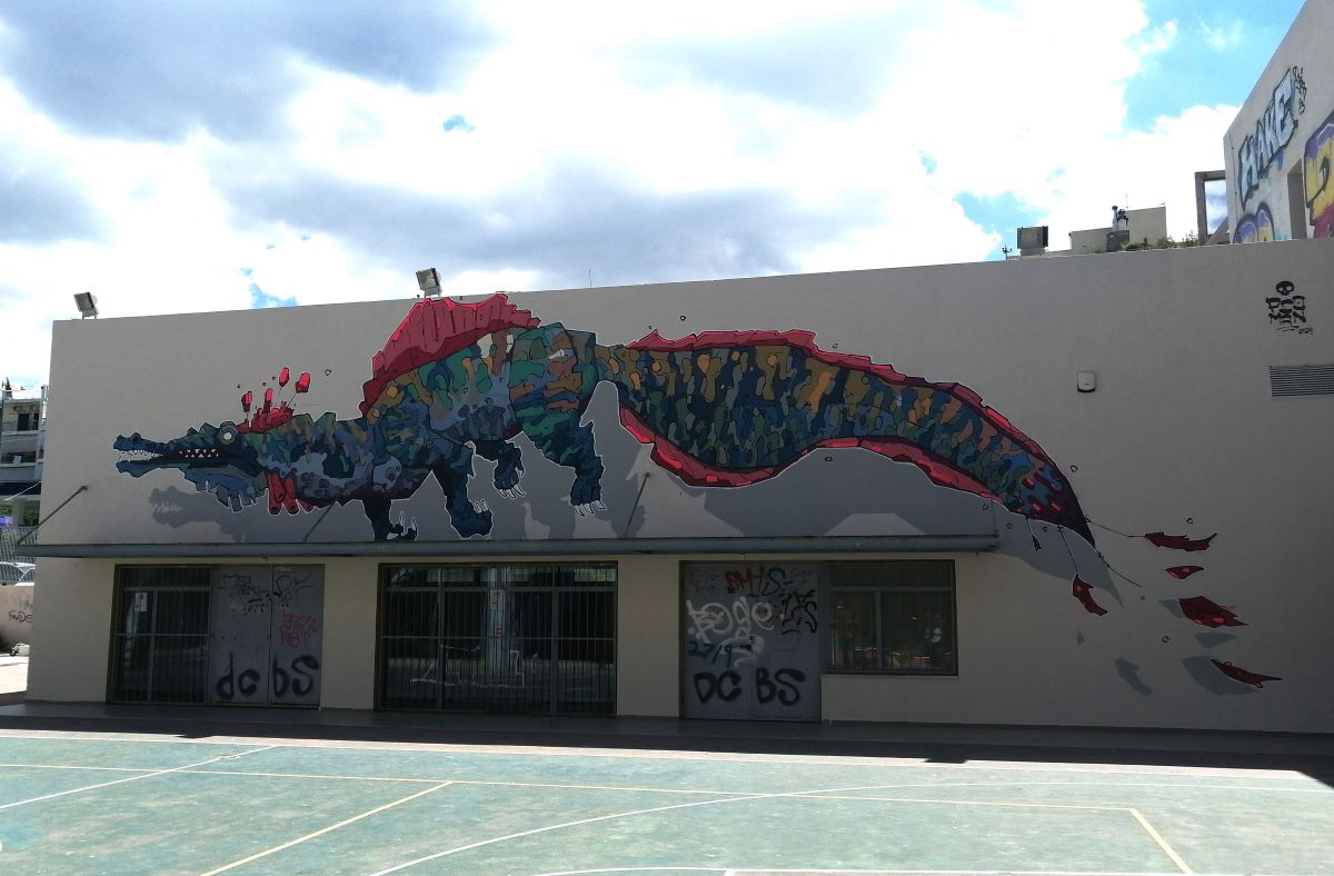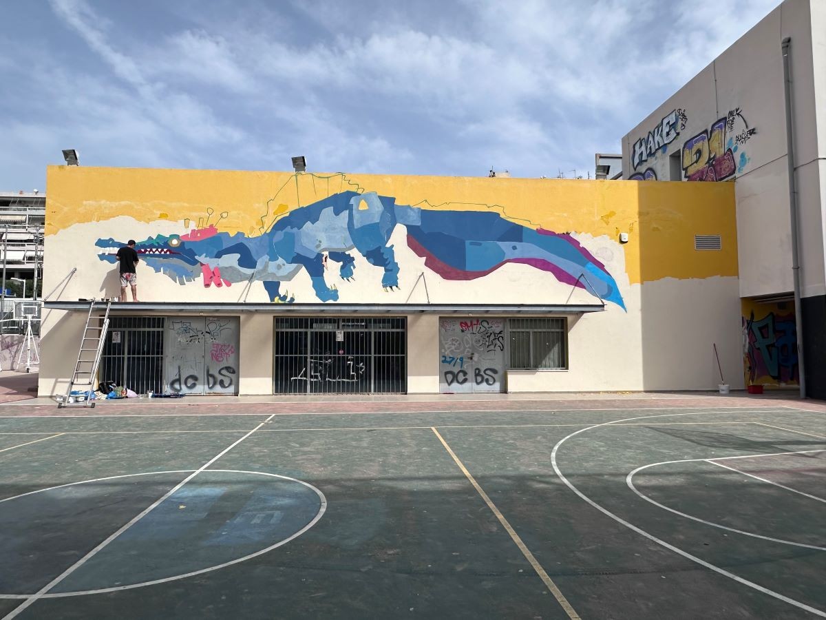 Η τοιχογραφία υλοποιήθηκε με την ευγενική προσφορά του καλλιτέχνη και την υλικοτεχνική υποστήριξη του Δήμου Βύρωνα και της Awesome Athens Experiences.