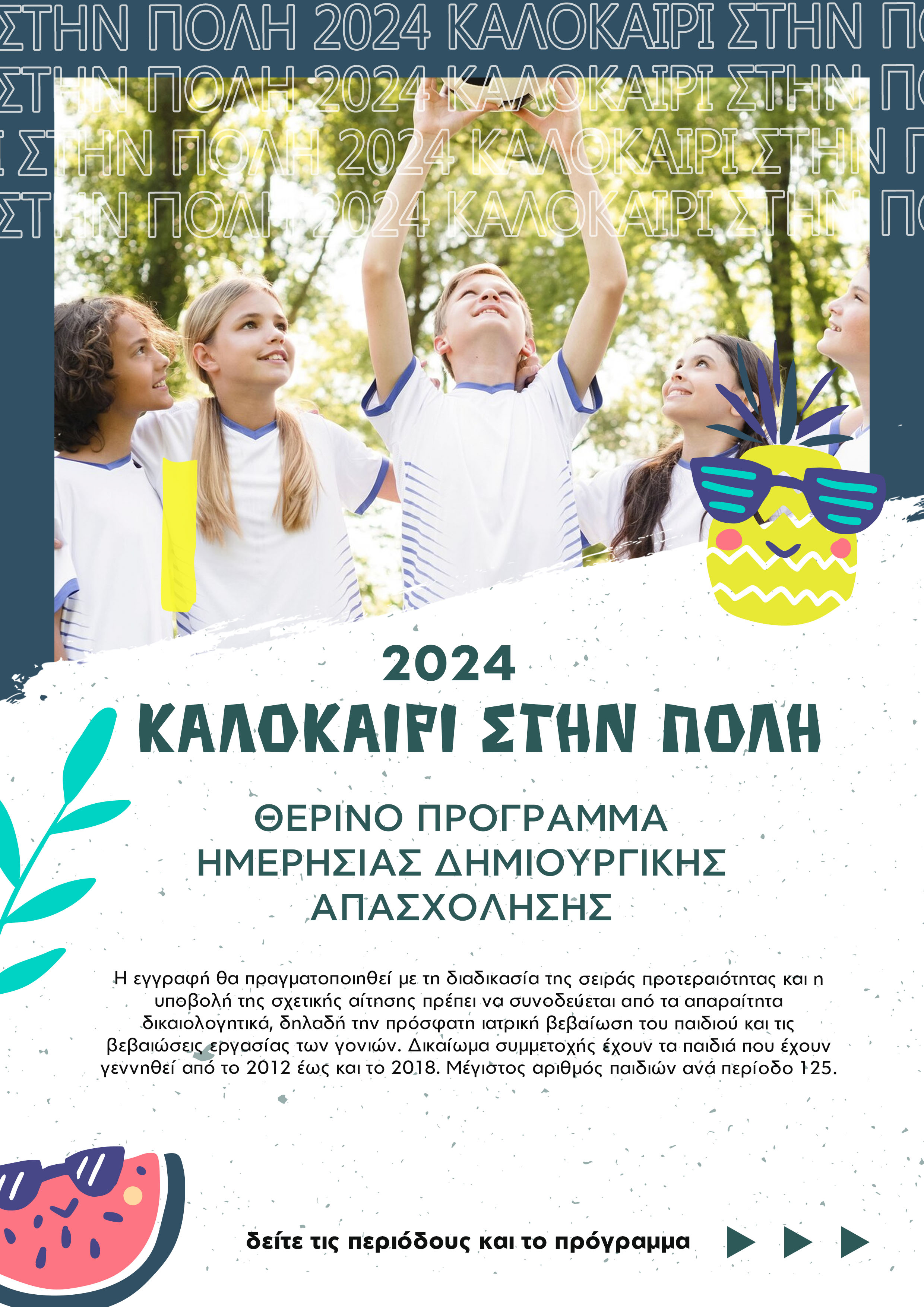 Καλοκαίρι στην Πόλη 2024 - Θερινό Πρόγραμμα Ημερήσιας Δημιουργικής Απασχόλησης
