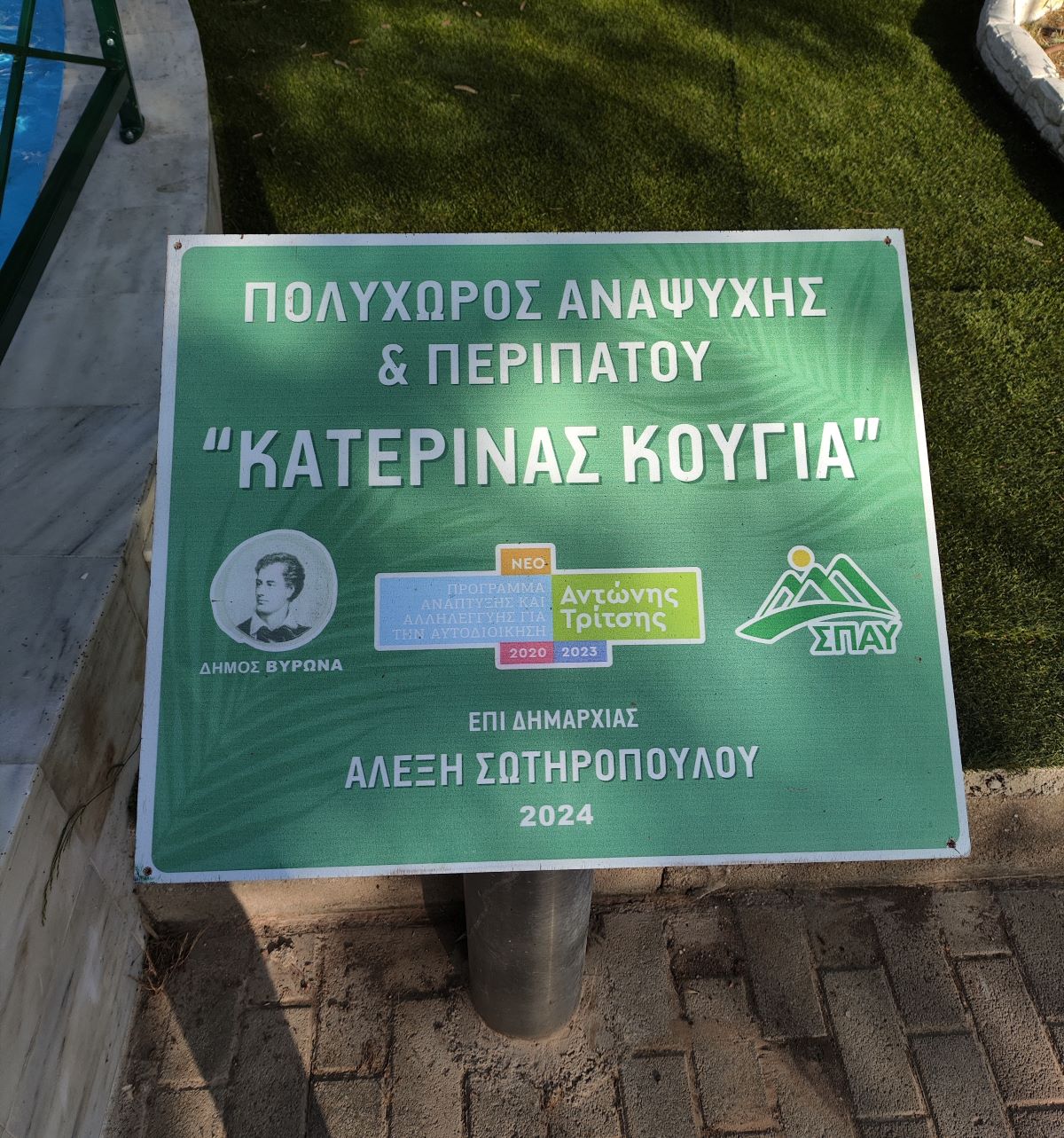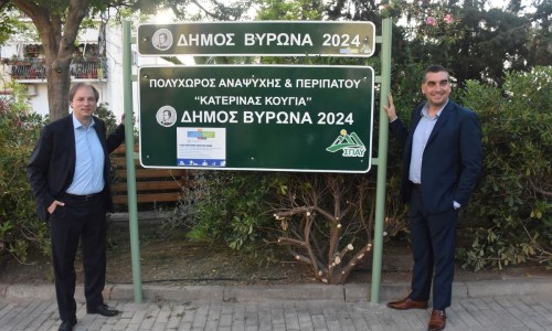 Το νέο Πάρκο Περιβαλλοντικής Ευαισθητοποίησης (Πρότυπος Πολυχώρος «Κατερίνα Κουγιά» τέρμα οδού Δάφνης – έναντι Ιερού Ναού Αγίου Γεωργίου Καρέα) εγκαινίασαν χθες, Τετάρτη (15/05), ο Δήμαρχος Βύρωνα Αλέξης Σωτηρόπουλος και ο Πρόεδρος του Συνδέσμου Προστασίας & Ανάπτυξης Υμηττού (ΣΠΑΥ) Γιάννης Κωνσταντάτος και Δήμαρχος Ελληνικού - Αργυρούπολης.
