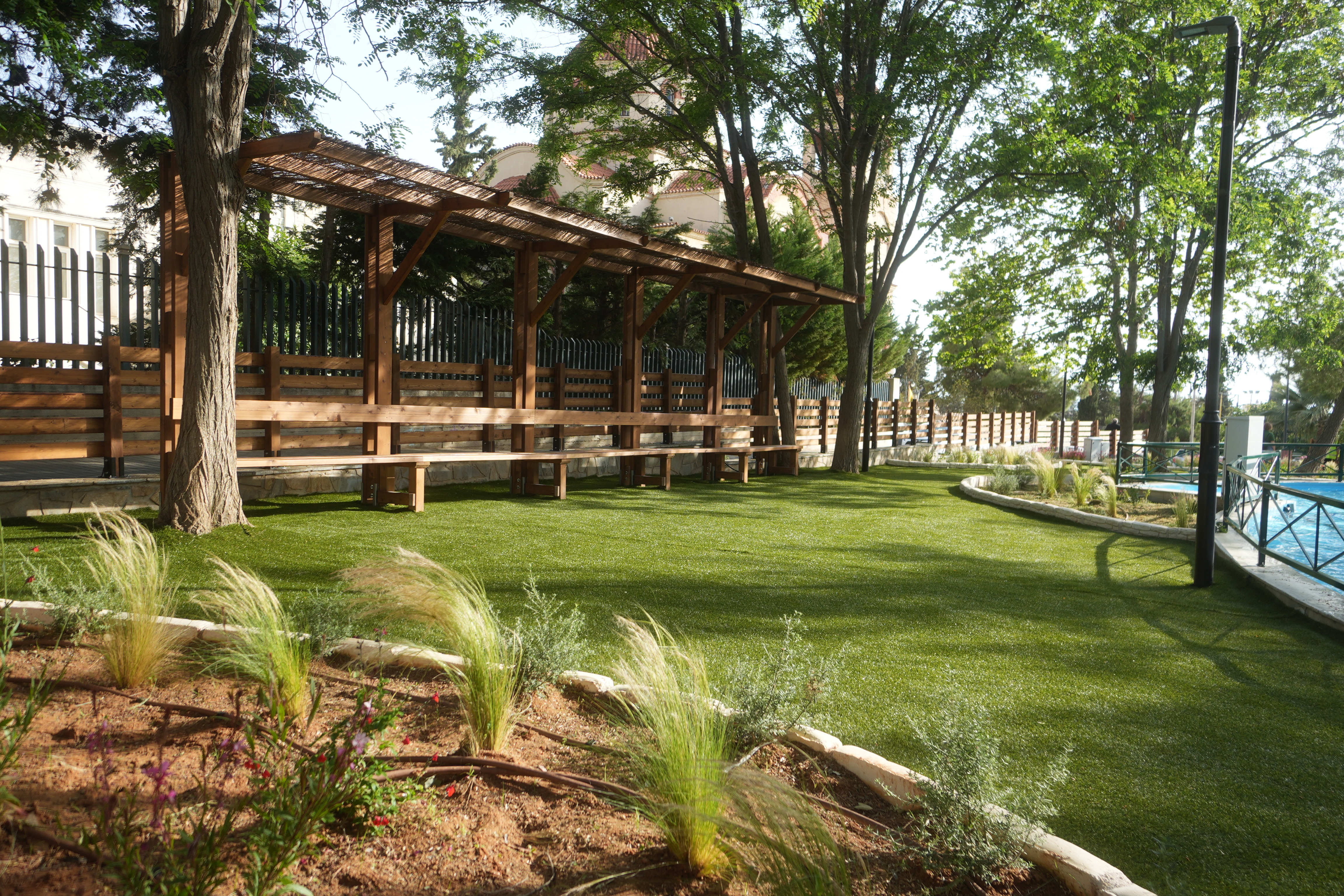 Παράλληλα, ενισχύθηκε η φύτευση και εγκαθίσταται νέο σύστημα αυτόματου ποτίσματος. Οι υφιστάμενοι αναβαθμισμένοι κοινόχρηστοι χώροι βελτιώνουν το μικροκλίμα και ενοποιούνται οι επιμέρους λειτουργίες που αναπτύσσονται εντός του χώρου.