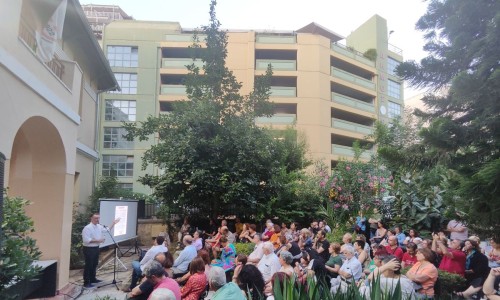 Στη συνέχεια, ο συγγραφέας Μενέλαος Χαραλαμπίδης πήρε τον λόγο, εξηγώντας την έμπνευσή του για τη συγγραφή του βιβλίου και αναλύοντας τη θεματολογία του. Το βιβλίο «Οι Δωσίλογοι. Ένοπλη, πολιτική και οικονομική συνεργασία στα χρόνια της Κατοχής» εμβαθύνει στην περίοδο της Κατοχής και εξετάζει τη συνεργασία με τις κατοχικές δυνάμεις, προσφέροντας μια νέα οπτική γωνία στα γεγονότα εκείνης της περιόδου. Ο συγγραφέας μελέτησε εκτενώς ιστορικές πηγές και ανέπτυξε μια συγκλονιστική αφήγηση που καθηλώνει τον αναγνώστη. Η εκδήλωση ολοκληρώθηκε με ερωτήσεις από το κοινό και συζήτηση, δίνοντας τη δυνατότητα στους παρευρισκόμενους να εκφράσουν τις απόψεις τους και να συζητήσουν με τον συγγραφέα.