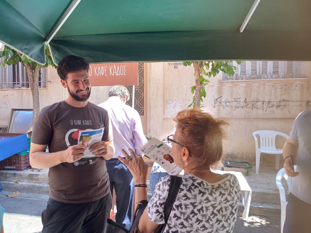 Παράλληλα, πραγματοποιήθηκε πόρτα – πόρτα ενημέρωση με θυροκόλληση για το πρόγραμμα του καφέ κάδου σε κτίρια της γύρω περιοχής.