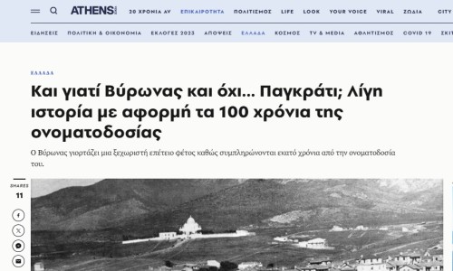 Αφιέρωμα της Athens Voice στο Δήμο Βύρωνα με αφορμή τα 100 χρόνια από την ονοματοδοσία του