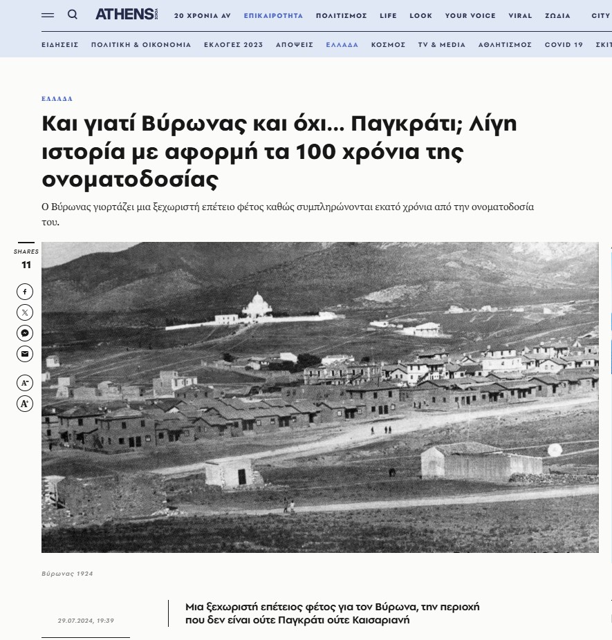 Και γιατί Βύρωνας και όχι... Παγκράτι; Λίγη ιστορία με αφορμή τα 100 χρόνια της ονοματοδοσίας
