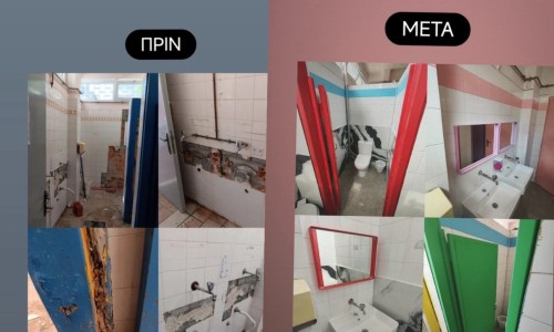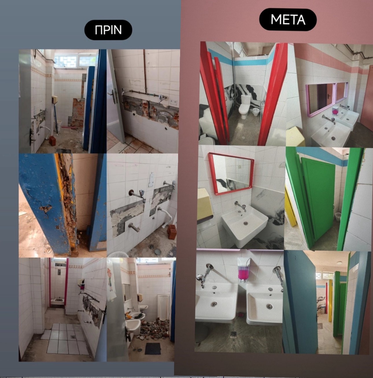 Ανακατασκευή στις τουαλέτες σε 3 ορόφους του σχολείου και βάψιμο των διαδρομών.