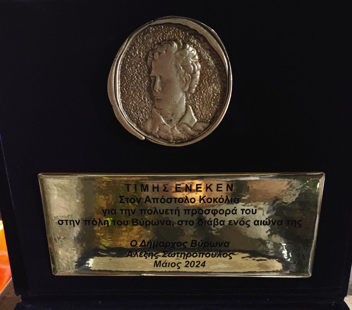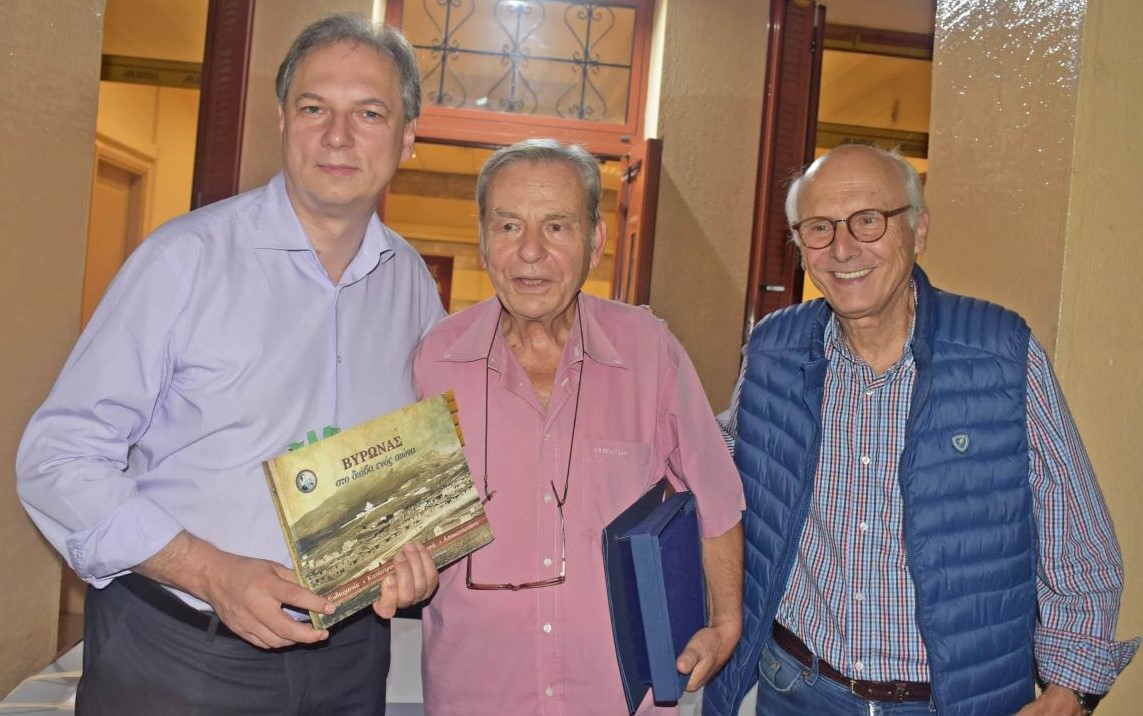 Τιμητική πλακέτα απένειμαν στον συγγραφέα ο Δήμαρχος Βύρωνα Αλέξης Σωτηρόπουλος εξυμνώντας την πολυετή προσφορά του στην πόλη του Βύρωνα και τη σημασία του λευκώματος, καθώς και ο Πρόεδρος της Πανιωνίου Στέγης Δημήτρης Σάρολας.