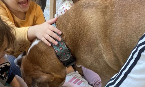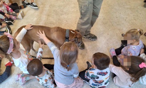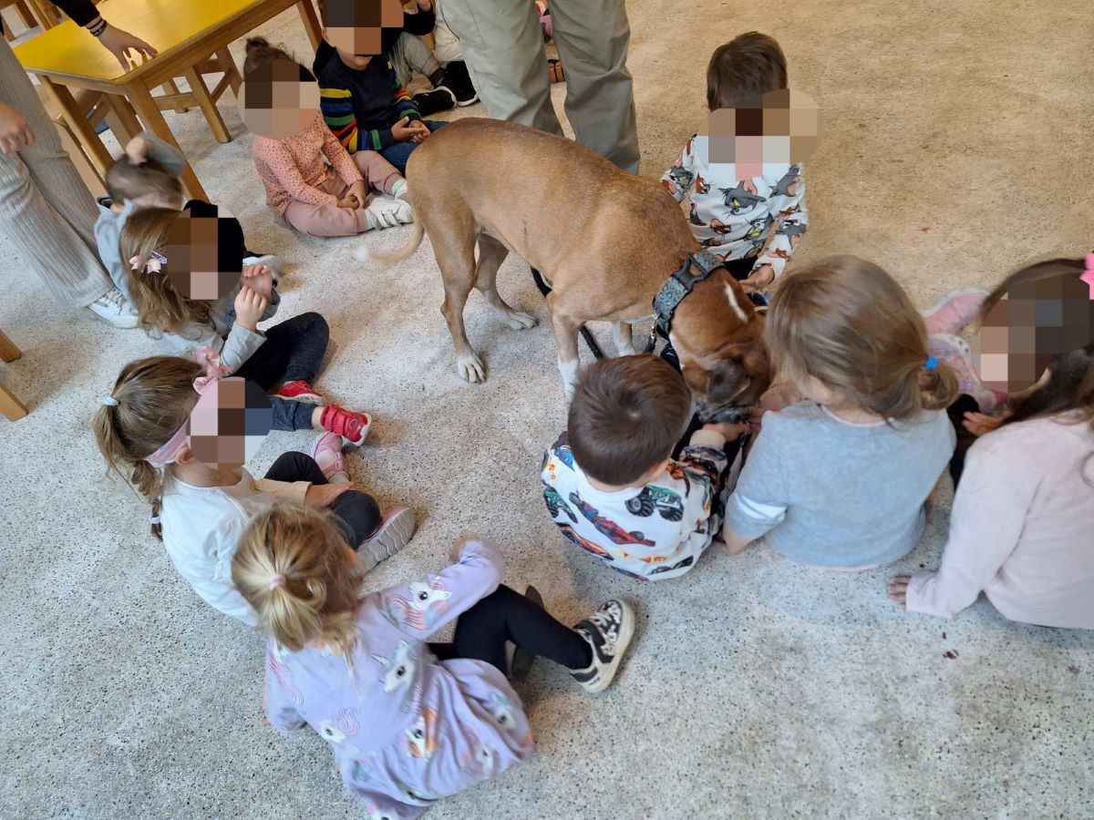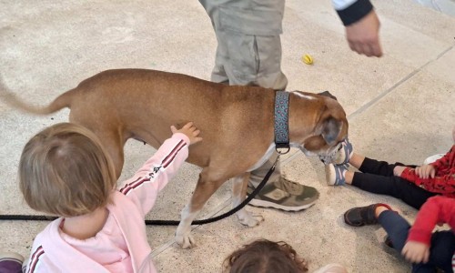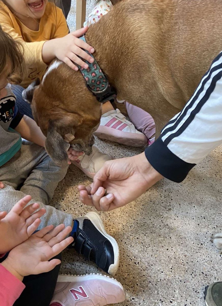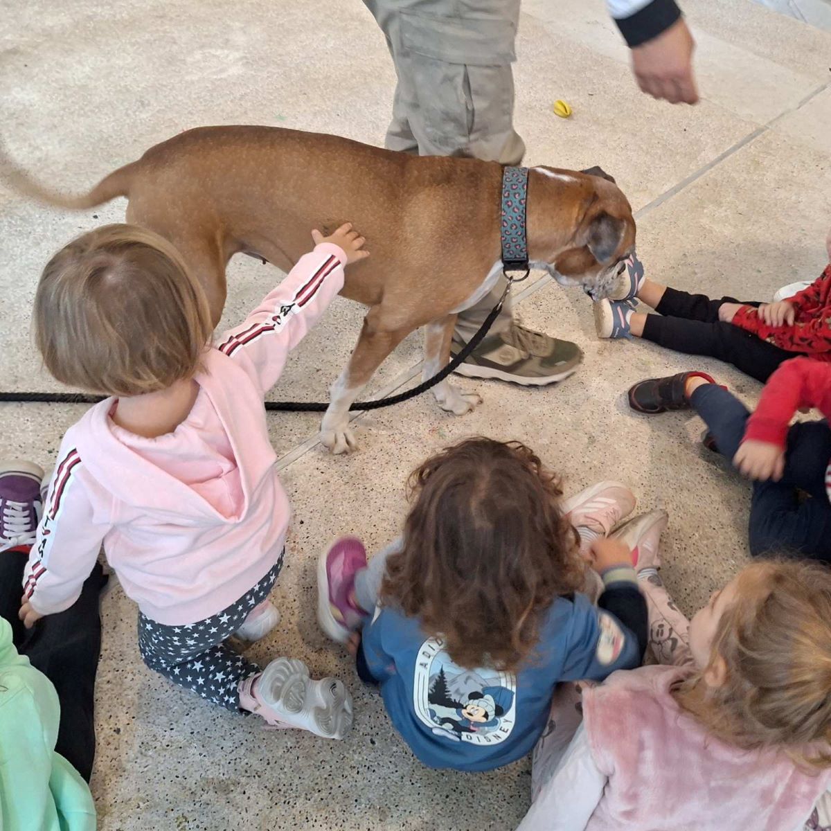 Στα πλαίσια της φιλοζωικής ευαισθητοποίησης, ήρθε στο σχολείο μας η σκυλίτσα Σίντρα με τον εκπαιδευτή της, μάθαμε κανόνες ασφαλείας για το πώς πλησιάζουμε ένα ζωάκι.