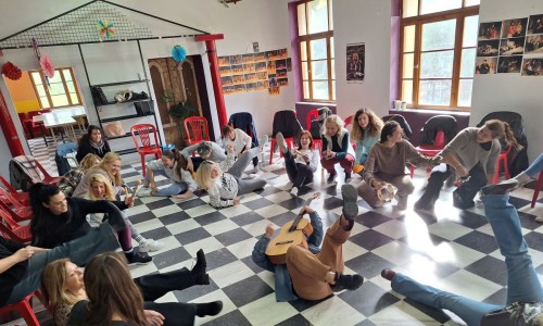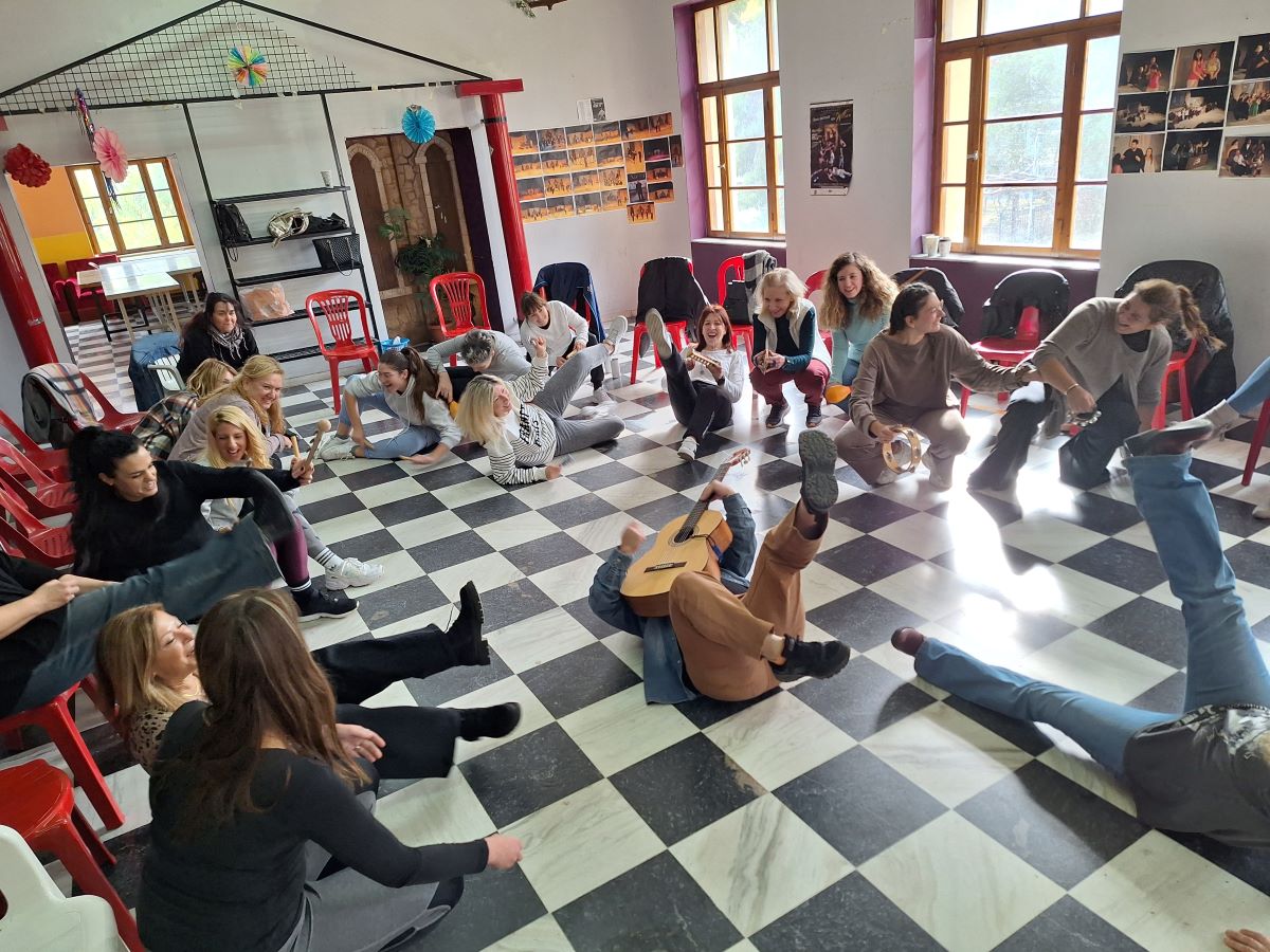 Ευχαριστούμε την υπεύθυνη του σεμιναρίου Άννα Σεβαστή Τζίμα -ηθοποιό, σκηνοθέτη, συγγραφέα και θεατροπαιδαγωγό από την ομάδα «Μορφές έκφρασης» και τον Δημήτρη Σκούρτη -μουσικό και ηθοποιό, ο οποίος πλαισίωσε μουσικά τα δρώμενα με συνοδεία κιθάρας.