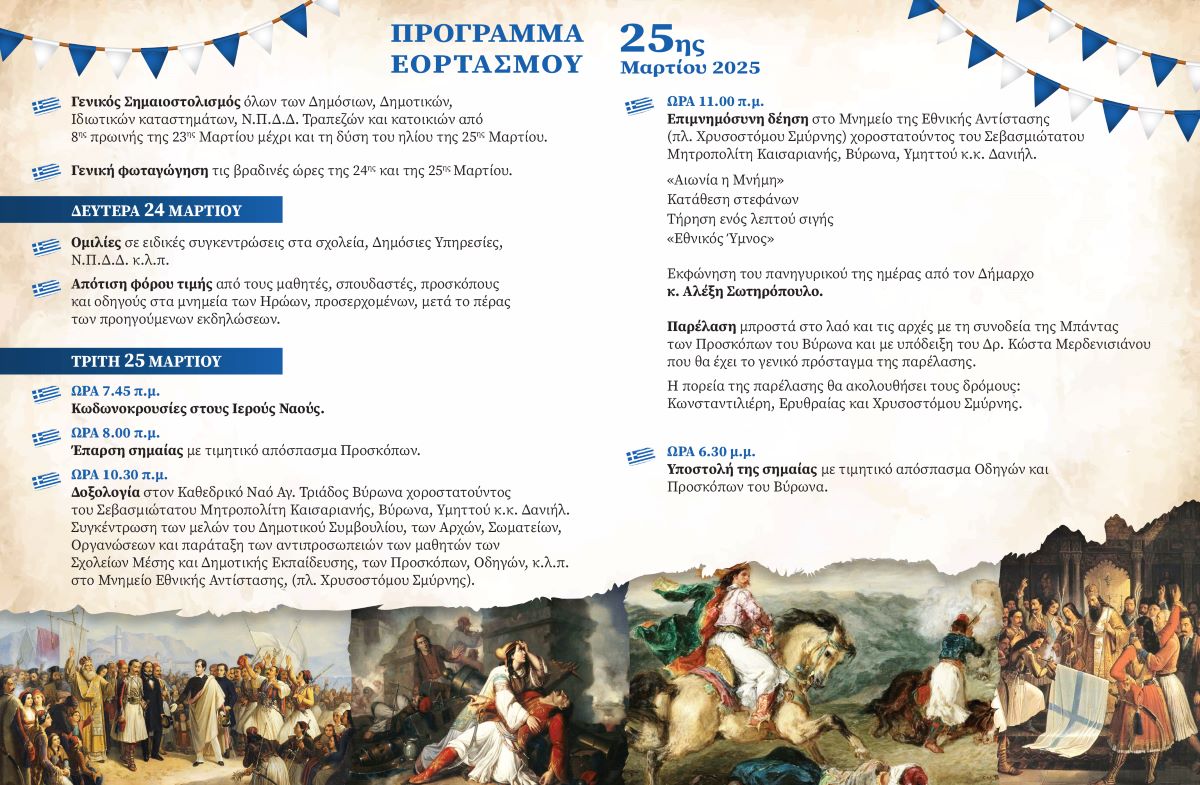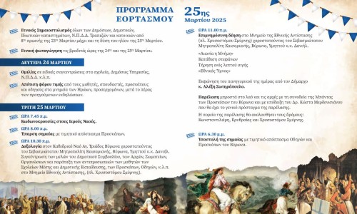 Πρόγραμμα Εορτασμού 25ης Μαρτίου 2025
