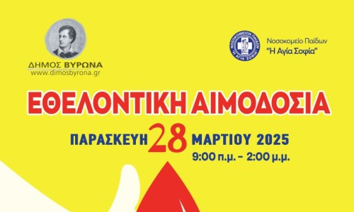 Εθελοντική Αιμοδοσία του Δήμου Βύρωνα, Παρασκευή 28 Μαρτίου 2025