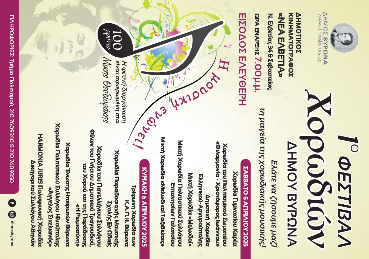 Το 1ο Φεστιβάλ Χορωδιών είναι εδώ για να προσφέρει μια μοναδική εμπειρία στην πόλη μας, με συμμετοχές χορωδιών από διάφορες περιοχές.