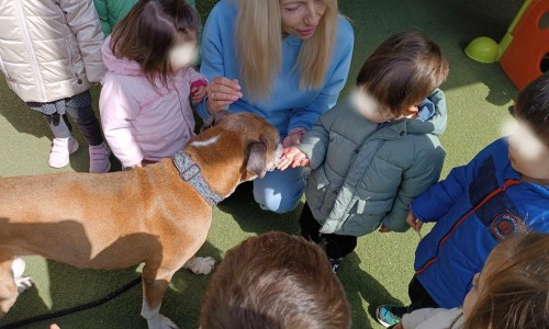 Συνεχίζεται το πρόγραμμα φιλοζωικής ευαισθητοποίησης που διεξάγεται από το Δήμο Βύρωνα και από τον εκπαιδευτή σκύλων Πέτρο Σιδερέα, με τη συνοδεία της Σίντρα, πιστοποιημένου σκύλου θεραπείας, στον 4ο Παιδικό Σταθμό.