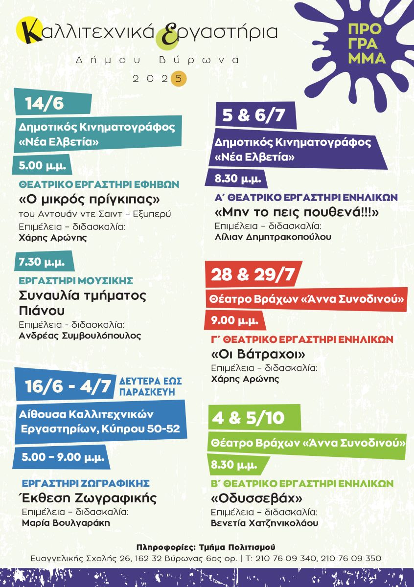 Καλλιτεχνικά Εργαστήρια Δήμου Βύρωνα 2025 / Μια χρονιά δημιουργίας κορυφώνεται – Οι τελικές παρουσιάσεις ξεκινούν