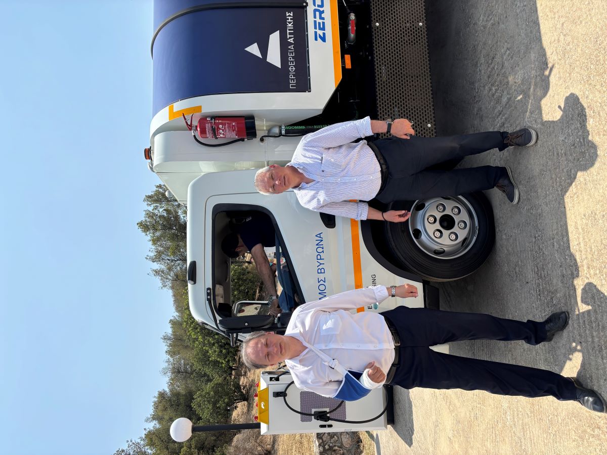 Το απορριμματοφόρο αποκτήθηκε με χρηματοδότηση της Περιφέρειας Αττικής και δόθηκε από τον περιφερειάρχη Νίκο Χαρδαλιά και από τον Πρόεδρο του Ε.Δ.Σ.Ν.Α. (Ενιαίος Διαβαθμιδικός Σύνδεσμος Νομού Αττικής) και Αντιπεριφερειάρχη Περιβάλλοντος & Ποιότητας Ζωής Μπάμπη Σιάτρα στον Δήμαρχο Βύρωνα Αλέξη Σωτηρόπουλο και στον Αντιδήμαρχο Καθαριότητας και Πρασίνου Βύρωνα Γιώργου Γκαρμπουνώφ σε τελετή που έλαβε χώρα στο Πάρκο Τρίτση την Παρασκευή 6 Ιουνίου. Τις επόμενες ημέρες θα γίνει και η εγκατάσταση του συστήματος φόρτισης στο αμαξοστάσιο του Δήμου Βύρωνα.