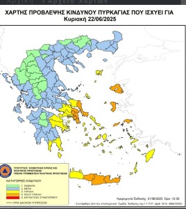 Αυξημένος Κίνδυνος Πυρκαγιάς(κατηγορίας 4) την Κυριακή 22 Ιουνίου 2025