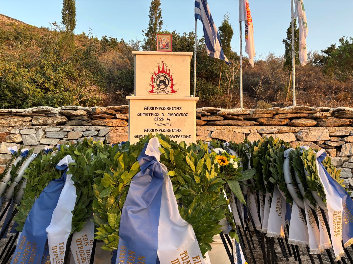 Κατάθεση Στεφάνου από τον Δήμαρχο Βύρωνα στη Μνήμη των Πεσόντων Πυροσβεστών στον Υμηττό