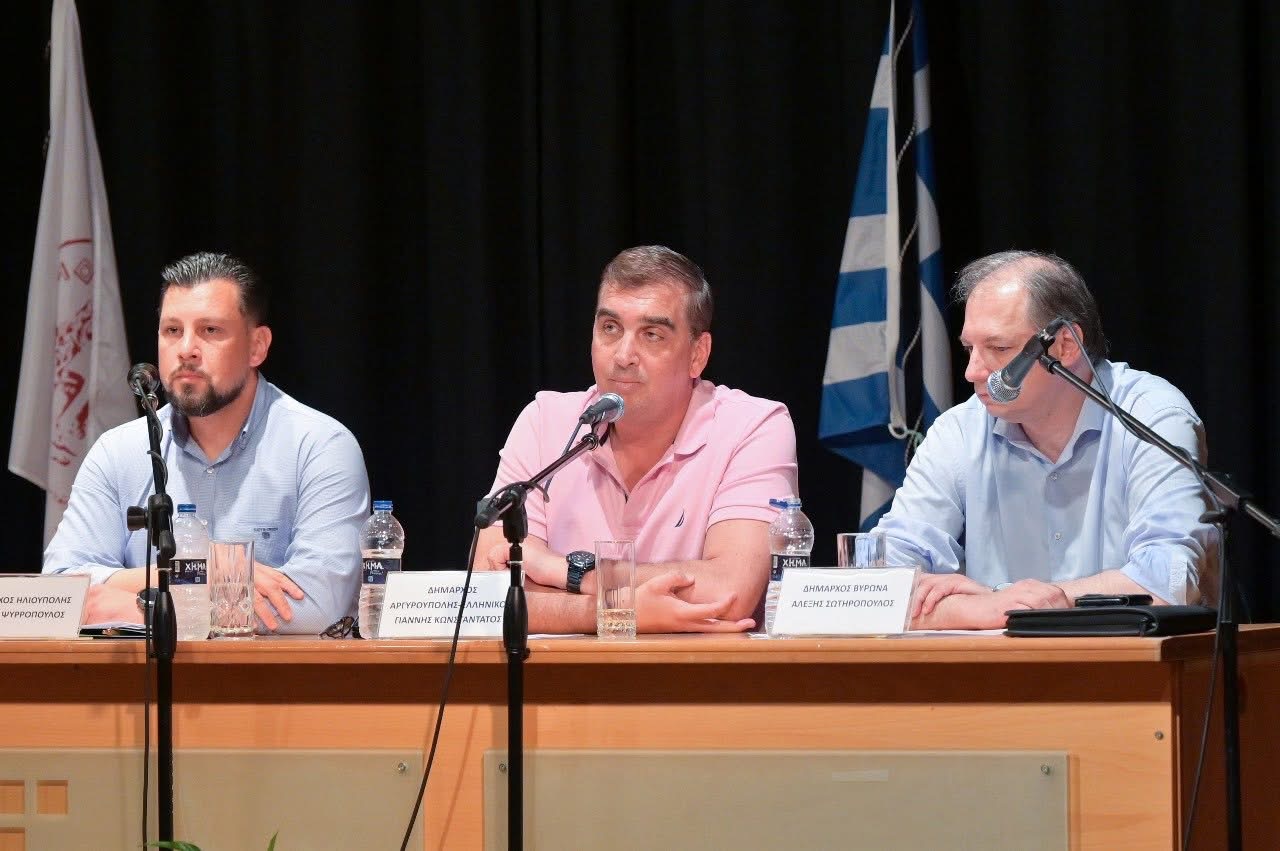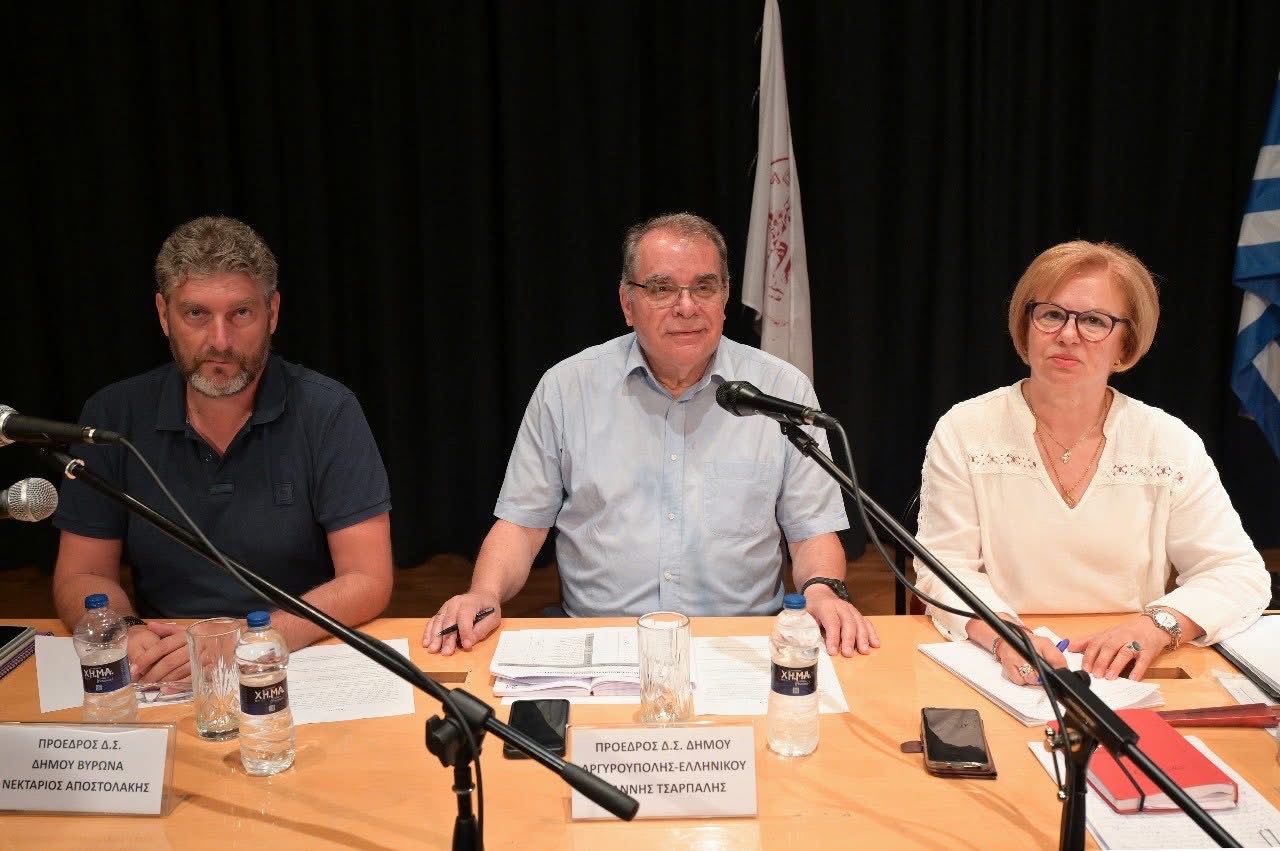 Το θέμα εισηγήθηκαν οι Δήμαρχοι Ηλιούπολης Στάθης Ψυρρόπουλος, Ελληνικού-Αργυρούπολης Γιάννης Κωνσταντάτος και Βύρωνα Αλέξης Σωτηρόπουλος τονίζοντας ότι σε κοινή γραμμή θα συνεχίσουν τους αγώνες ενωμένοι με οργανωμένο σχέδιο προκειμένου να υπερασπιστούν τα δικαιώματα των εκατοντάδων χιλιάδων κατοίκων που εκπροσωπούν.