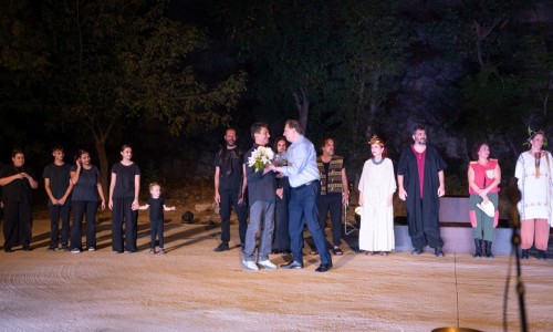 Στο τέλος της παράστασης, ο Δήμαρχος προσέφερε λουλούδια στον σκηνοθέτη Χάρη Αρώνη, ως ένδειξη εκτίμησης για τη σκηνική και παιδαγωγική του προσέγγιση, ενώ ο Εντεταλμένος Σύμβουλος Πολιτισμού και Πρωτοβάθμιας Εκπαίδευσης, Αντώνης Μποζιάρης, τίμησε με λουλούδια τον συνθέτη Αντρέα Συμβουλόπουλο για την πρωτότυπη μουσική επένδυση της παράστασης.