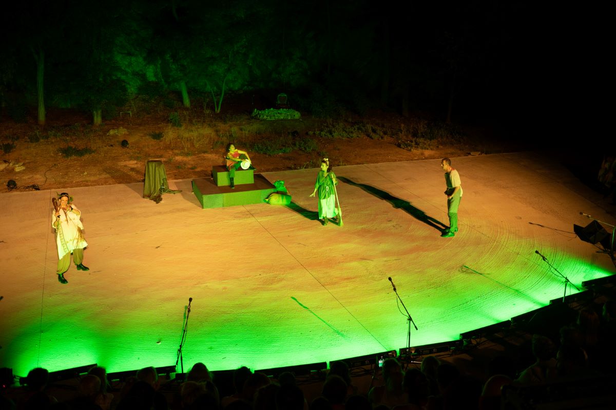 Με μεγάλη επιτυχία παρουσιάστηκε τη Δευτέρα 28 και την Τρίτη 29 Ιουλίου στο κατάμεστο Θέατρο Βράχων «Άννα Συνοδινού» η παράσταση «Βάτραχοι» του Αριστοφάνη, από το Γ’ Θεατρικό Εργαστήρι του Δήμου Βύρωνα. Το κοινό υποδέχθηκε με ενθουσιασμό μια σύγχρονη, δροσερή και γεμάτη έμπνευση διασκευή της αρχαίας κωμωδίας, που συνδύασε τη σάτιρα με ζωντανή μουσική και νεανικό παλμό.