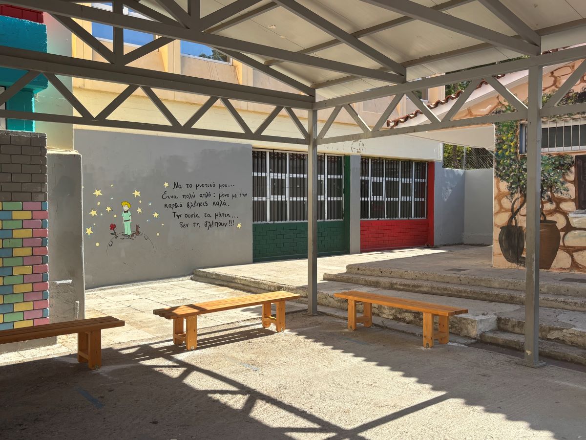 5ο ΛΥΚΕΙΟ Βάψιμο αιθουσών και κοινόχρηστων χώρων-κλιμακοστάσιο (15 αίθουσες), τοποθέτηση 5 παγκακιών στον προαύλιο χώρο.