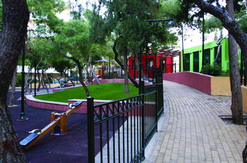 Μια ακόμη μικρή όαση για τους μικρούς μας φίλους της γειτονιάς του κέντρου παραδόθηκε προς χρήση. Περιλαμβάνει παιδικές χαρές τόσο για τα νήπια όσο και για τα βρέφη και διαθέτει ειδικά δάπεδα, όργανα και παιχνίδια ασφαλείας, χώρους ξεκούρασης πολύ χρώμα, αλλά και πολύ πράσινο (φυτεύτηκαν εκεί σχεδόν 200 φυτά και θάμνοι)Οδοί που περικλείουν την παιδική χαρά: ΡΑΙΔΕΣΤΟΥ