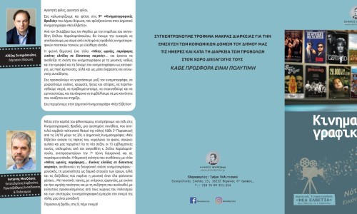 Από τον Οκτώβριο έως τον Απρίλιο, με την επιμέλεια του σκηνοθέτη Στέλιου Χαραλαμπόπουλου, θα έχουμε την ευκαιρία να απολαύσουμε μια σειρά από επιλεγμένες προβολές κινηματογραφικών ποιοτικών ταινιών, με ελεύθερη είσοδο.