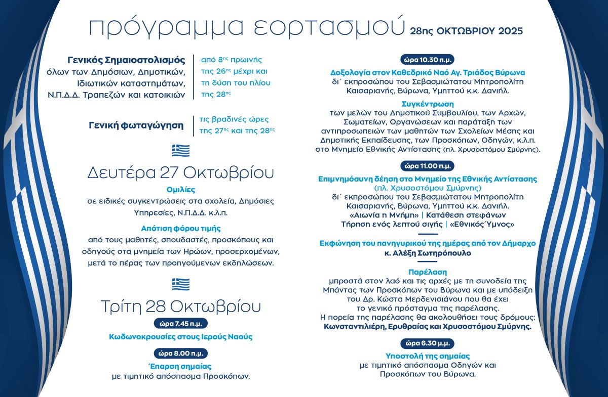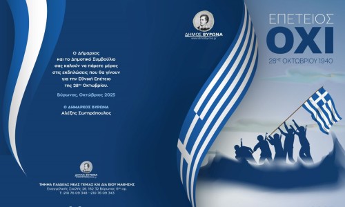 Ο Δήμος Βύρωνα ανακοινώνει το πρόγραμμα των εορταστικών εκδηλώσεων για την 28η Οκτωβρίου 2025