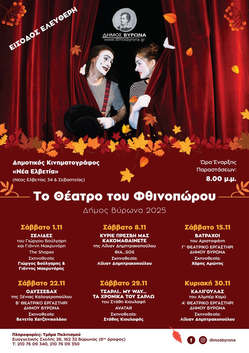 «Το Θέατρο του Φθινοπώρου» – Δήμος Βύρωνα 2025