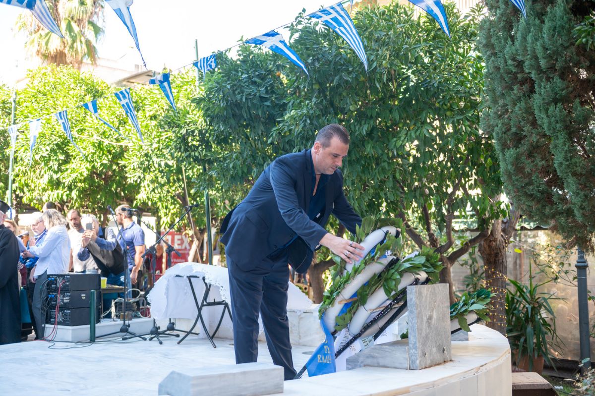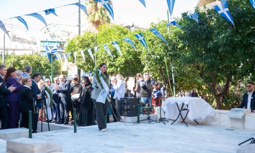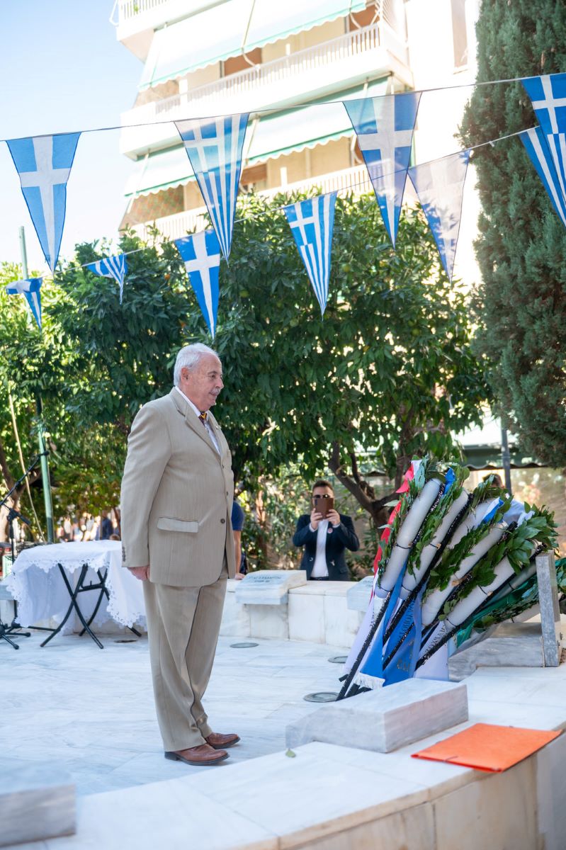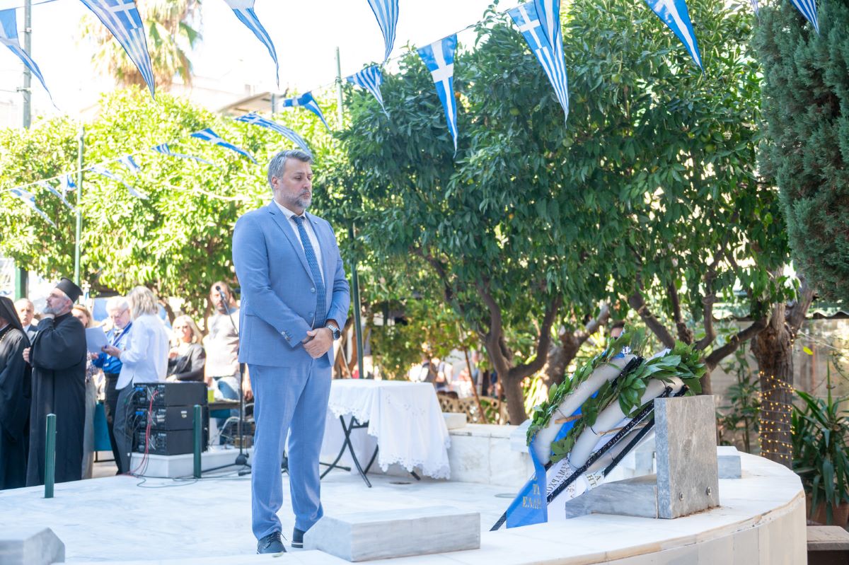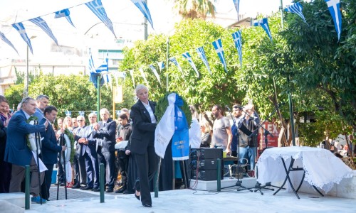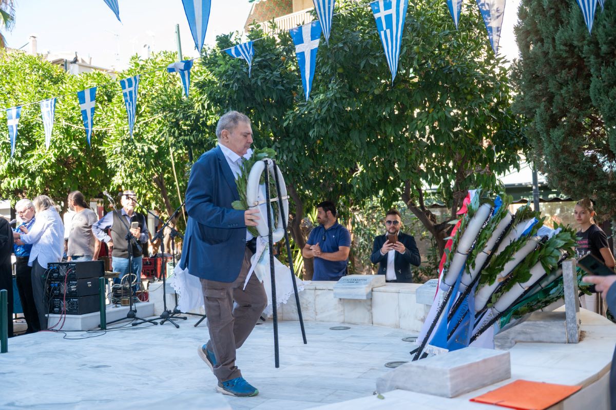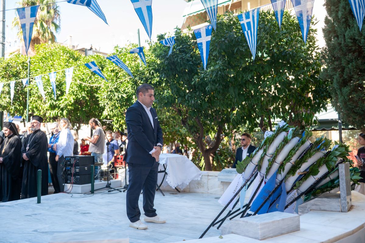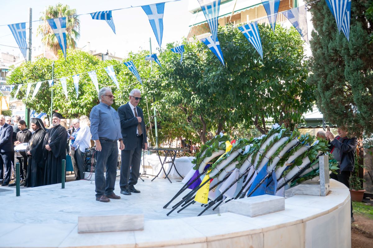 Ακολούθησε η κατάθεση στεφάνων από τον Δήμαρχο Βύρωνα, Αλέξη Σωτηρόπουλο, καθώς και από εκπροσώπους της Πολιτείας, της Περιφέρειας, των δημοτικών παρατάξεων και τοπικών συλλόγων και σωματείων.