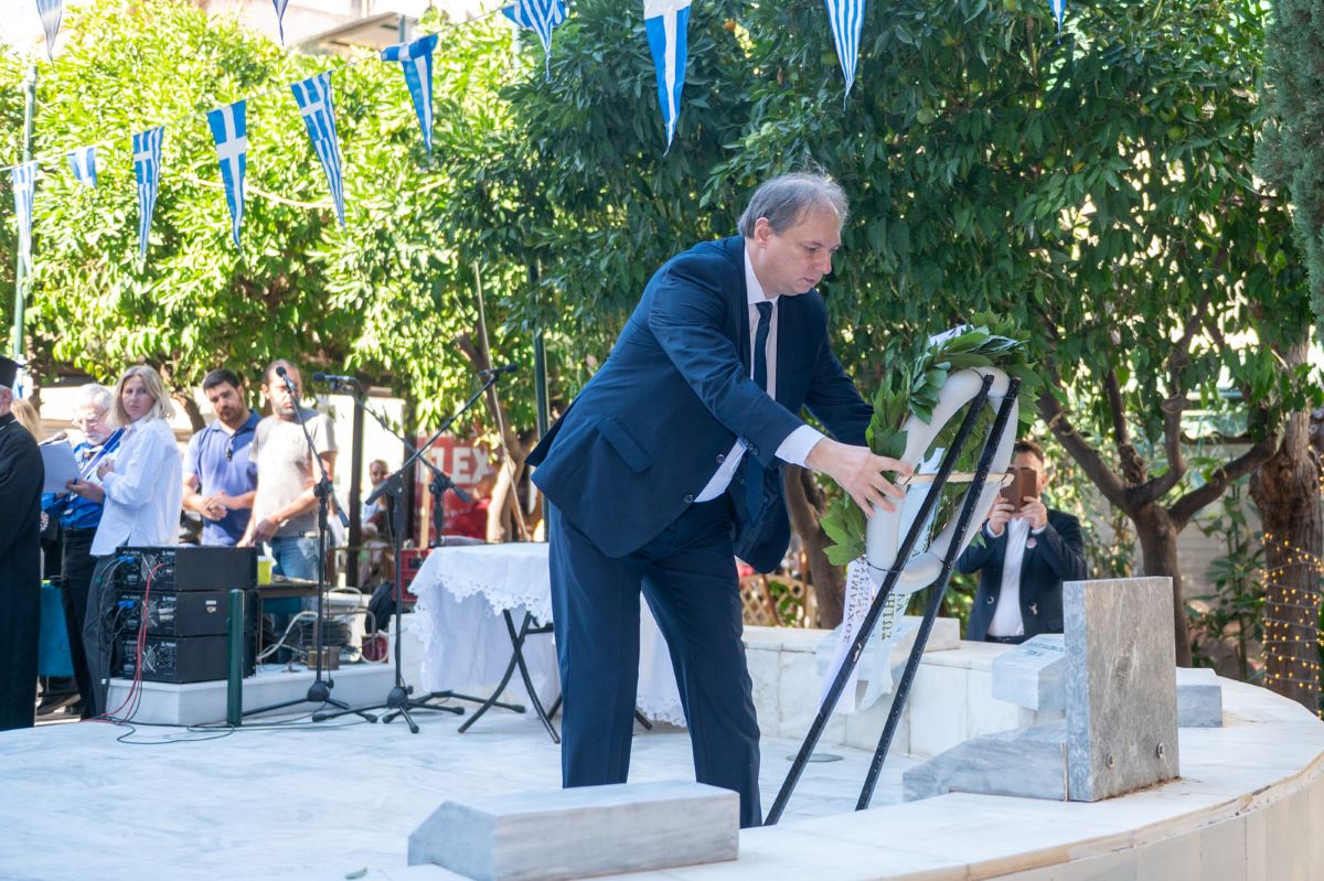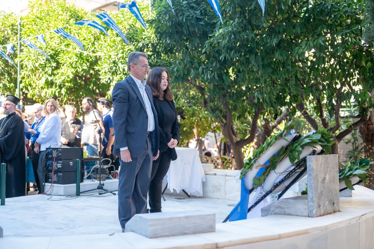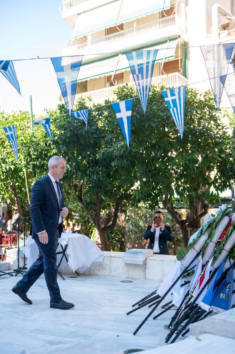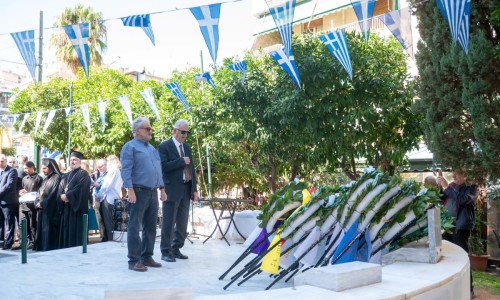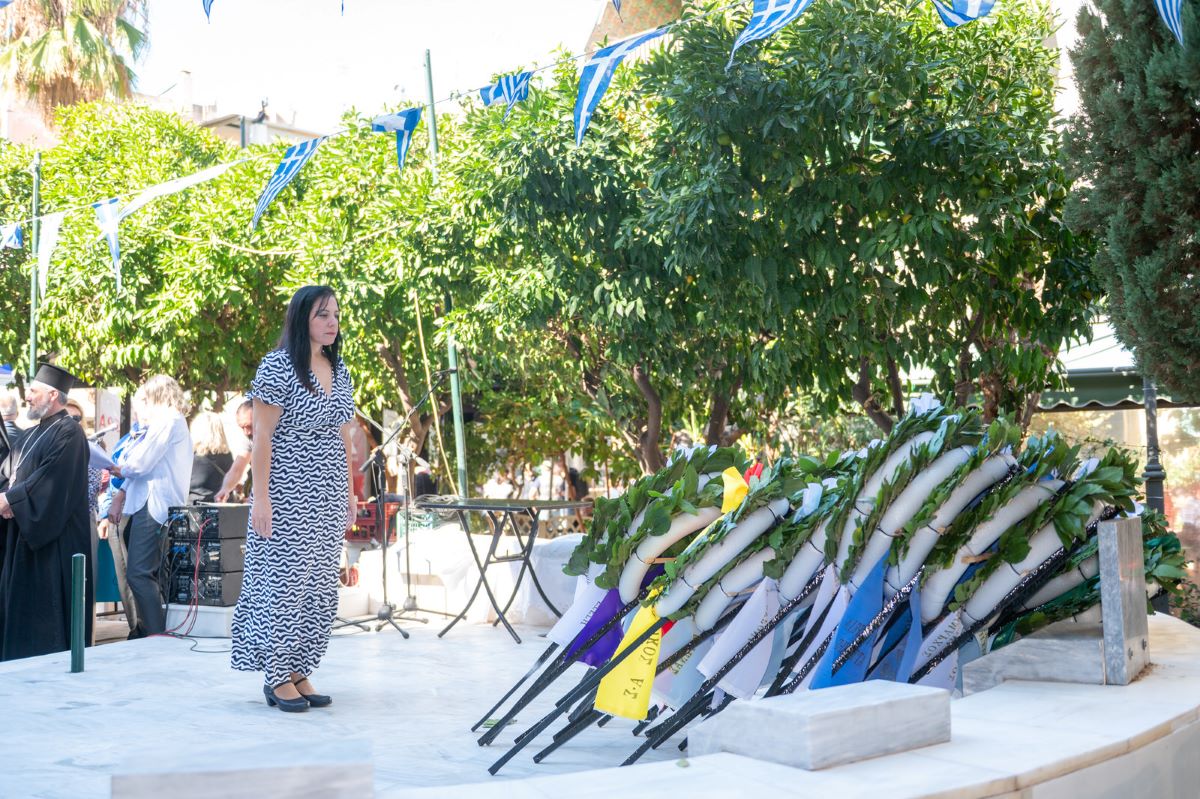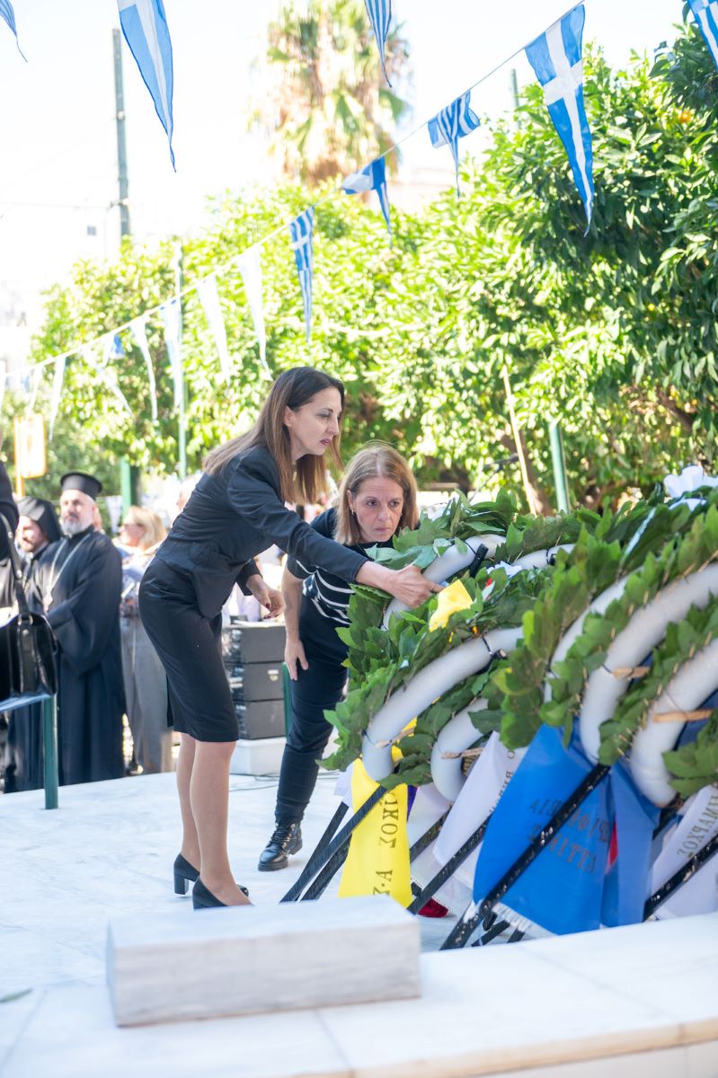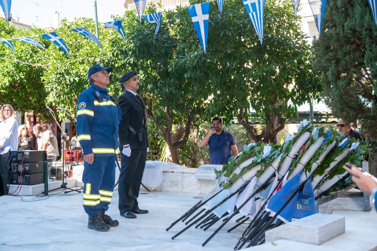 Ακολούθησε η κατάθεση στεφάνων από τον Δήμαρχο Βύρωνα, Αλέξη Σωτηρόπουλο, καθώς και από εκπροσώπους της Πολιτείας, της Περιφέρειας, των δημοτικών παρατάξεων και τοπικών συλλόγων και σωματείων.