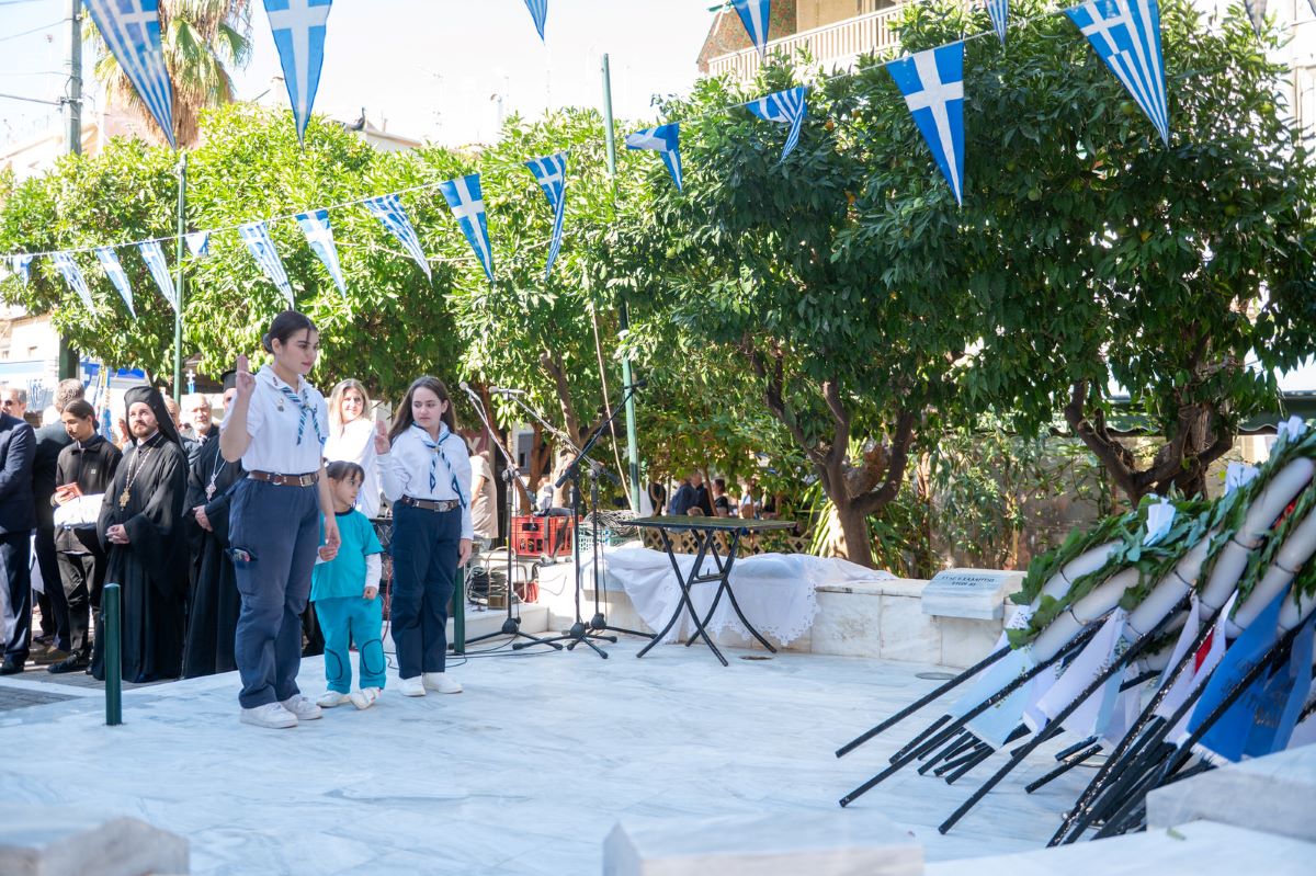 Συγκεντρωθήκαμε σήμερα, όπως κάθε τέτοια ημέρα, όλοι μας για να τιμήσουμε μια ημέρα ιερή. Μια ημέρα που φωτίζει την ψυχή του ελληνισμού. Την 28η Οκτωβρίου του 1940 — την ημέρα που ο ελληνικός λαός ύψωσε το ανάστημά του απέναντι στην τυραννία και έγραψε με το αίμα και το θάρρος του μία από τις πιο λαμπρές σελίδες της παγκόσμιας ιστορίας. Όταν εκείνο το ξημέρωμα της 28ης Οκτωβρίου η φασιστική Ιταλία απαίτησε την παράδοση της χώρας μας, η απάντηση του ελληνικού λαού ήταν ένα ξερό αλλά ακατάβλητο «Όχι». Ένα «Όχι» που ειπώθηκε από έναν ολόκληρο λαό. Από τους στρατιώτες, τις μάνες, τα παιδιά, τους γέροντες, που βγήκαν στους δρόμους φωνάζοντας «θα νικήσουμε». Ήταν το «Όχι» της ψυχής, της αξιοπρέπειας, της πίστης στον άνθρωπο και στην ελευθερία. Ήταν η φυσική συνέχεια του ¨Μολών λαβέ» που είχε ακουσθεί κάποτε σ` αυτόν τον τόπο απέναντι σ` ένα άλλο βάρβαρο εισβολέα. Η Ελλάδα του 1940 δεν ήταν ισχυρή οικονομικά, δεν διέθετε τεράστιους στρατούς, ούτε τα υπερσύγχρονα όπλα του φασιστικού Άξονα. Αλλά είχε κάτι που δεν αγοράζεται και δεν υποτάσσεται: είχε ψυχή.Με αυτή την ψυχή, οι Έλληνες πολέμησαν στα βουνά της Ηπείρου, μέσα στο χιόνι και στην παγωνιά, γράφοντας το Έπος του ’40. Με θάρρος, με αυταπάρνηση, με την αποφασιστικότητα ότι η ελευθερία δεν χαρίζεται — κατακτάται. Δεν περιορίσθηκαν σε μία συμβολική απλώς αντίσταση, όπως είχαν κάνει άλλοι λαοί απέναντι στις δυνάμεις του Άξονα τους προηγούμενους 14 μήνες. Αντιθέτως! Όχι μόνο απέκρουσαν την ιταλική επίθεση, αλλά αντεπιτέθηκαν με επιτυχία, απελευθερώνοντας τόσες και τόσες πόλεις της Βορείου Ηπείρου: Κορυτσά, Άγιους Σαράντα, Πόγραδετς, Αργυρόκαστρο, Χειμάρα. Ανάγκασαν τους λαούς της Ευρώπης να παρακολουθούν με δέος, αποδεικνύοντας ότι το μέγεθος ενός έθνους δεν μετριέται με την υλική ισχύ του, αλλά μετριέται με το μεγαλείο της ψυχής του. Μετριέται «με της καρδιάς το πύρωμα και με το αίμα» όπως έγραψε ο μεγάλος ποιητής μας Κωστής Παλαμάς. Και το ελληνικό «Όχι» έγινε έτσι παγκόσμιο σύμβολο. Και ο αγώνας των Ελλήνων έδωσε κουράγιο σε ολόκληρο τον ελεύθερο κόσμο, που βρισκόταν τότε στο σκοτάδι του φασισμού και του ναζισμού.
