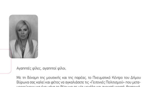 Για δεύτερη χρονιά συνεχίζονται και φέτος, από τις 15 Ιουνίου έως και τις 17 Ιουλίου, "Οι γειτονιές Πολιτισμού" του Πνευματικού Κέντρου του Δήμου Βύρωνα. Συναυλίες, αφιερώματα, κινηματογραφικές ταινίες, θεατρικά και Καραγκιόζης στο επίκεντρο και τα ερχόμενα καλοκαιρινά βράδια μαζευόμαστε όλοι στην πλατεία της γειτονιάς μας και διασκεδάζουμε. Πολιτισμός για όλους, πολιτισμός ενάντια στην κρίση, πολιτισμός στην πρώτη γραμμή.Δείτε συνοπτικά το πρόγραμμα των εκδηλώσεων κάνοντας κλικ εδώ ή συμβουλευτείτε την ατζέντα του Δήμου. Σας περιμένουμε όλους!